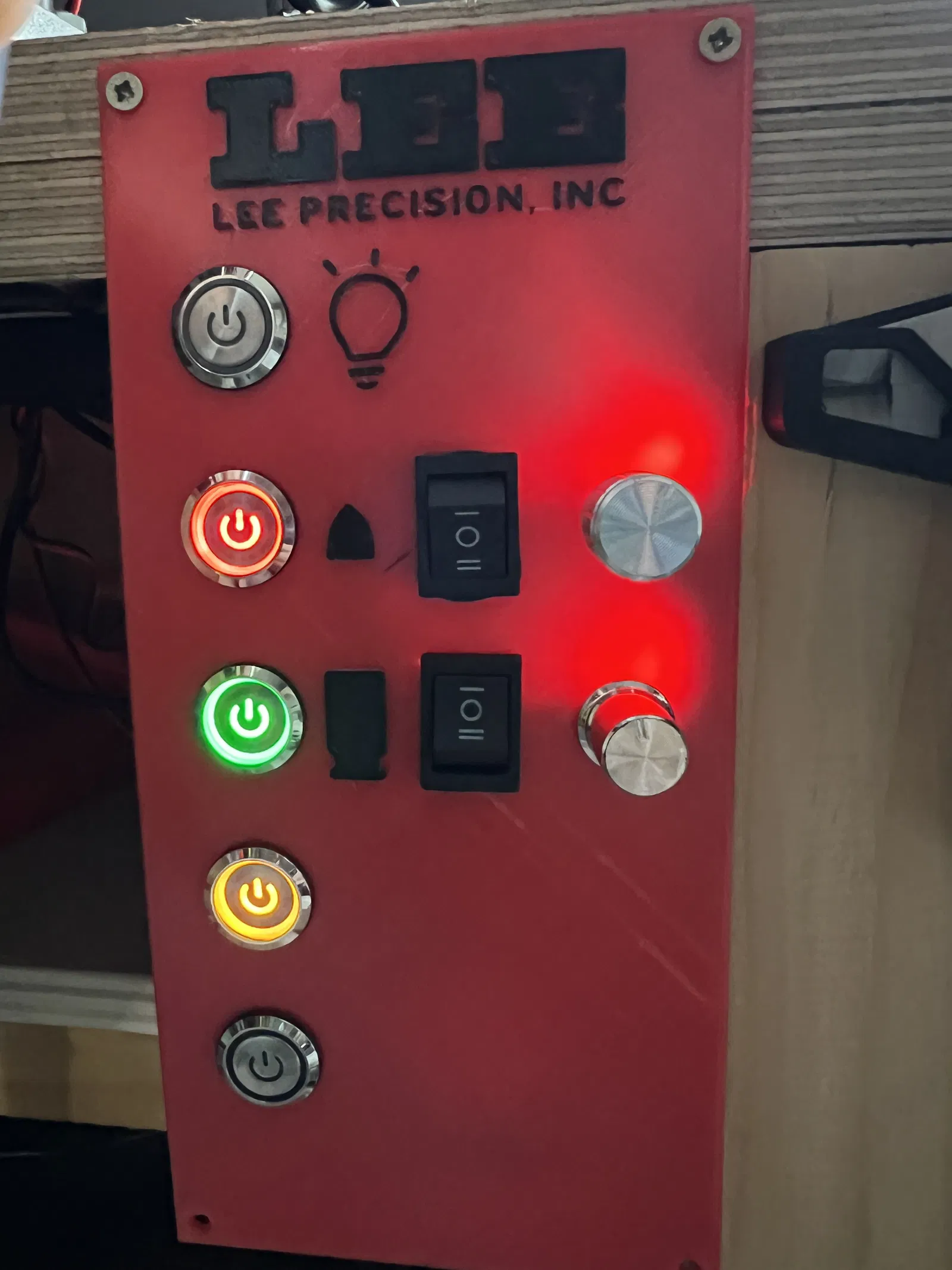 Bảng điều khiển được thiết kế để nhận một số công tắc và bộ điều khiển tốc độ nhằm trang bị cho máy ép nạp đạn Lee. Nó giúp sắp xếp các bộ điều khiển cho bộ nạp đạn, bộ nạp vỏ, báo động tiếp đạn, đèn UFO và bộ rung đo bột.