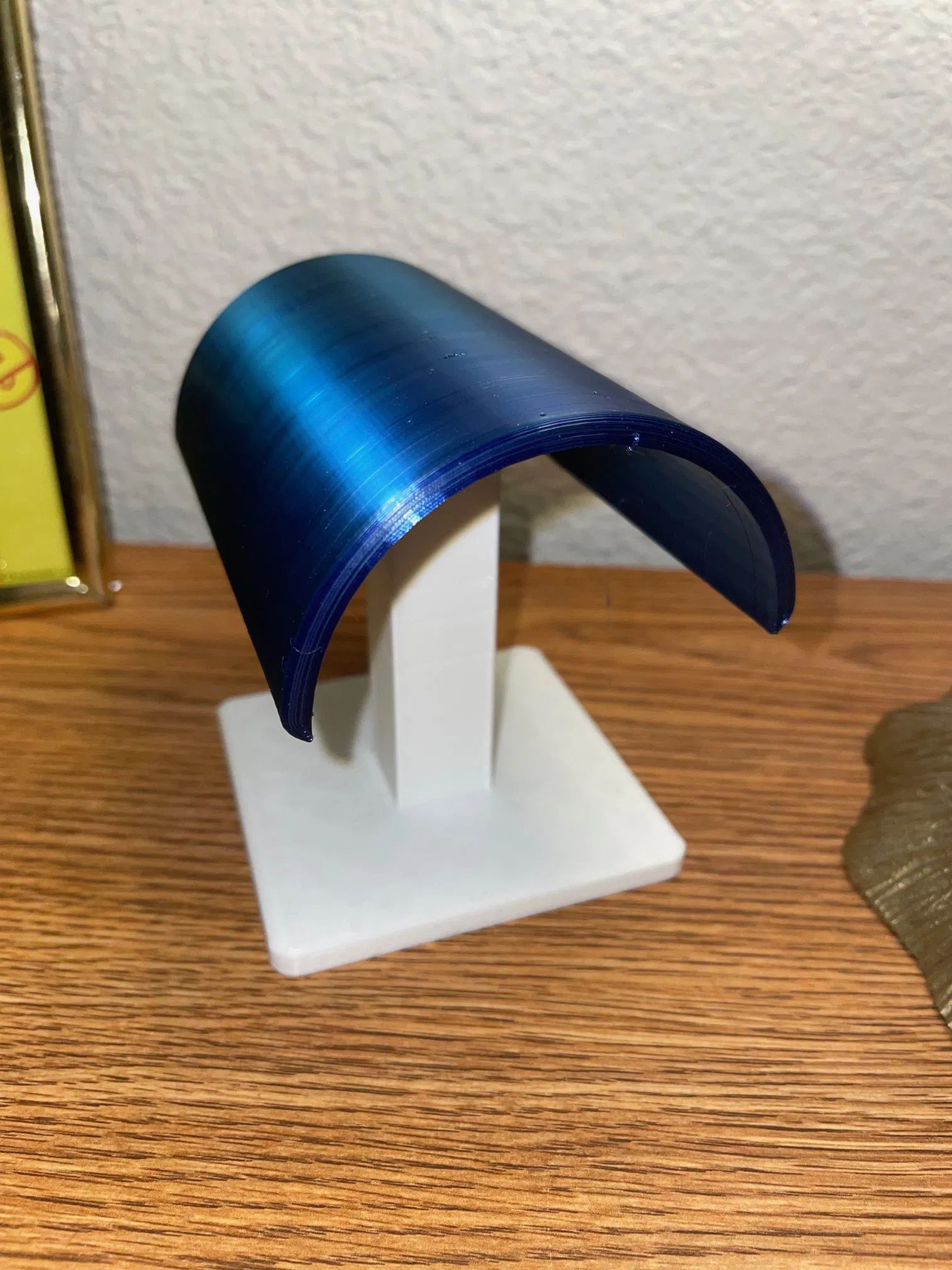 Cái đường cong nhỏ là cái mẫu được thấy trong hình đó. Cần có support chỉ cho cái phần cong thôi, nếu bạn quyết định in cái phần mặt phẳng đó trên bàn in.
