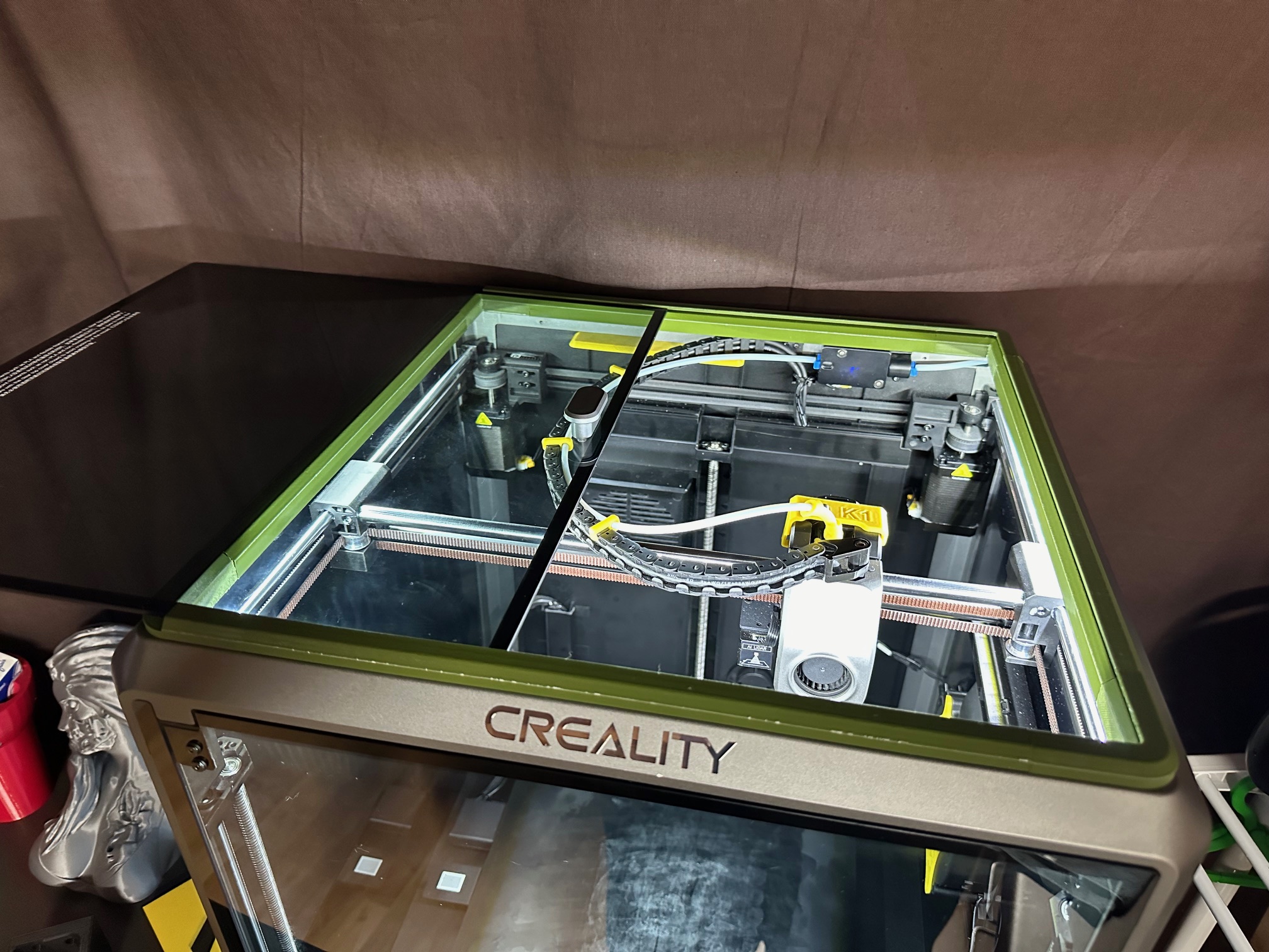Giải pháp nắp kính trượt cho K1 Max, thay vì tháo ra lắp vào phiền phức. Thiết kế này cho phép bạn dễ dàng mở nắp để đổi dây tóc hoặc in PLA, và đóng lại cho các loại dây tóc nhiệt độ cao mà không cần thao tác phức tạp. Có nhiều tùy chọn cho độ dày kính và chiều cao, phù hợp với mọi nhu cầu.