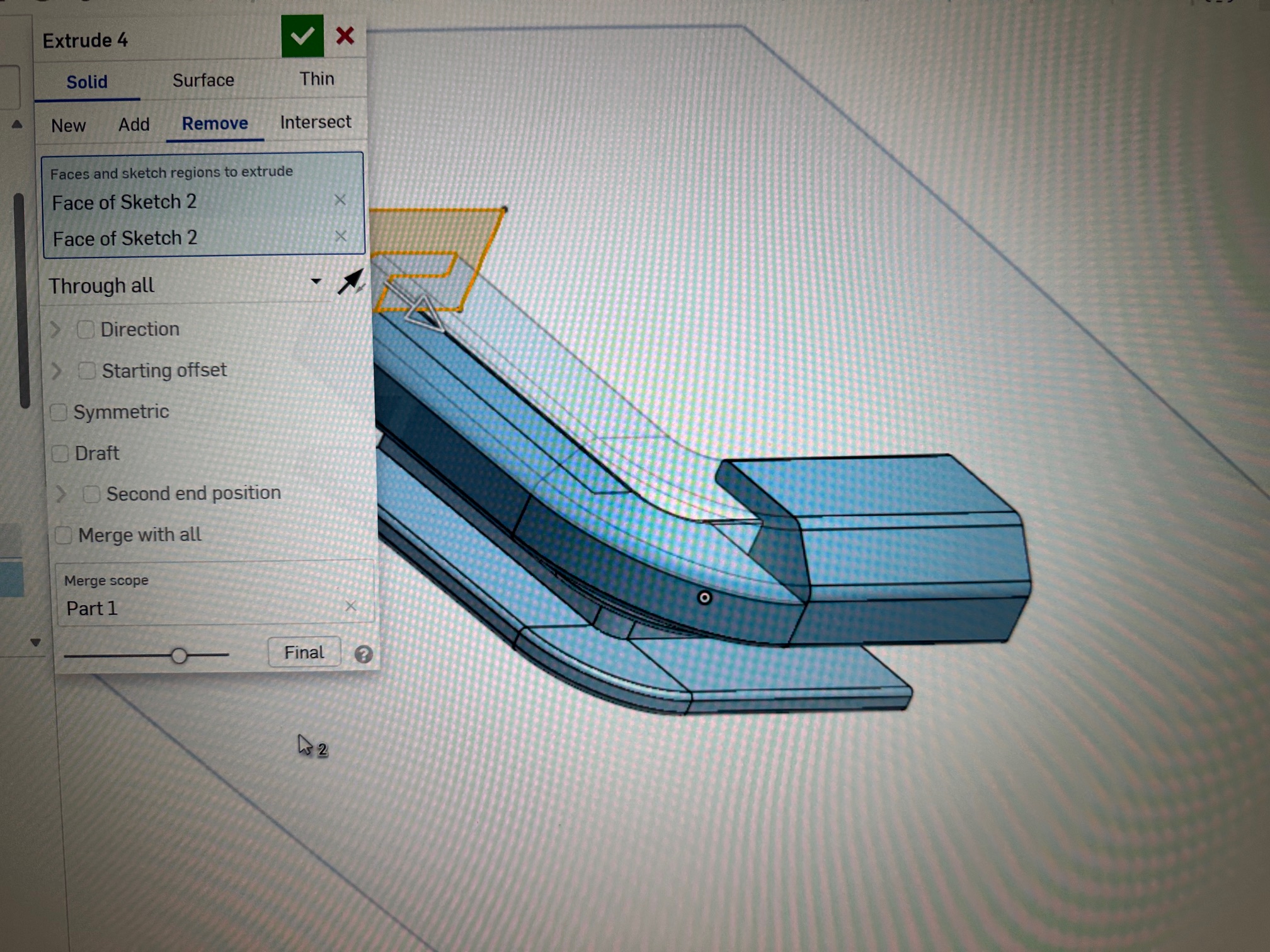Lưu ý: Nếu bạn định trượt cái tay cầm qua ray, bạn sẽ cần in một cái nửa ray có rãnh để ốc tay cầm có thể đi qua.