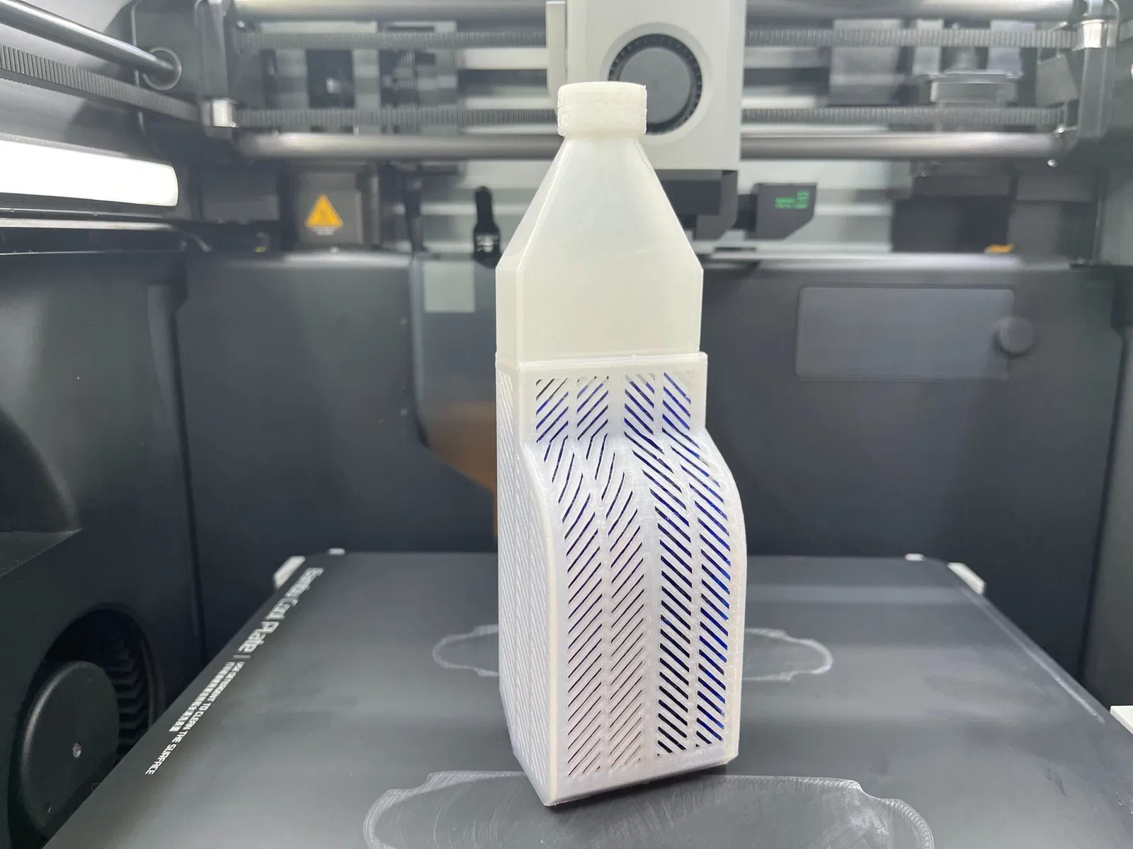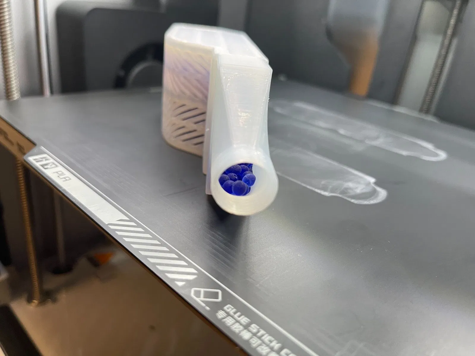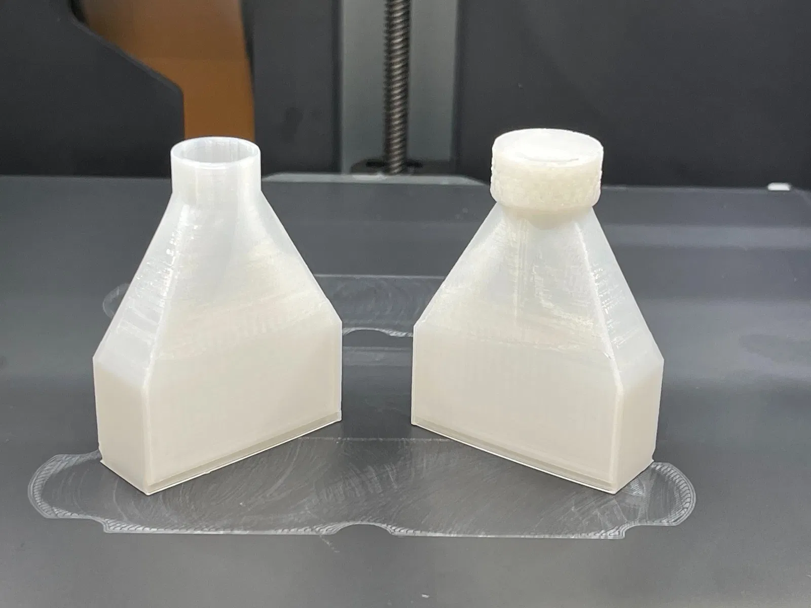In với đầu hẹp hướng lên trên nha. Xem hình cái phễu có ren và không có ren nha. Có thể bạn cần dùng brim. Mình có in được mà không cần brim, nhưng mà có brim thì gỡ ra dễ lắm.