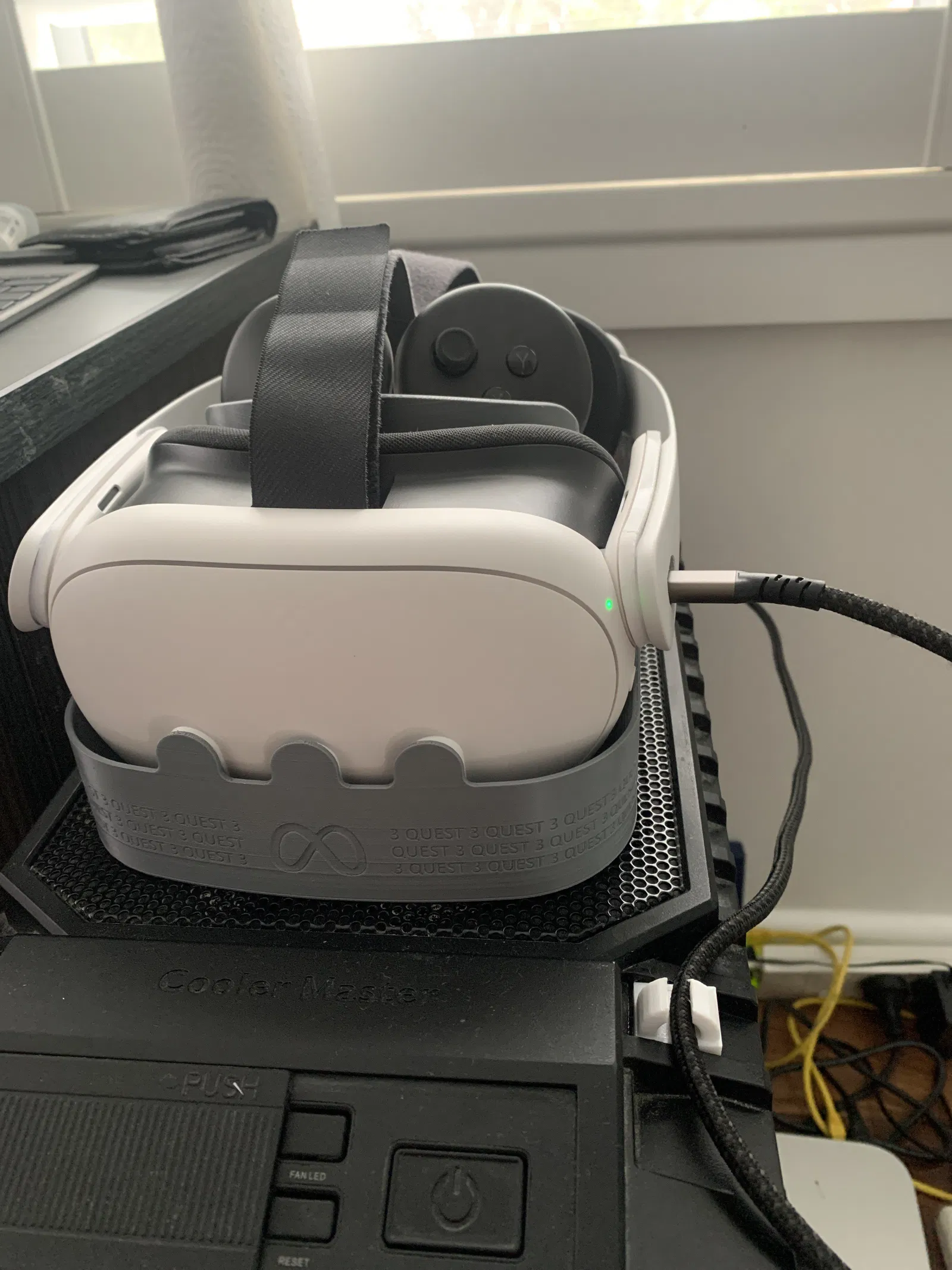 Đây là một cái kẹp để giữ dây cáp của bạn khỏi chạm sàn trên case Cooler Master HAF X. Nó được làm để giải quyết vấn đề đi dây cáp từ cổng USB-C phía sau ra phía trước.