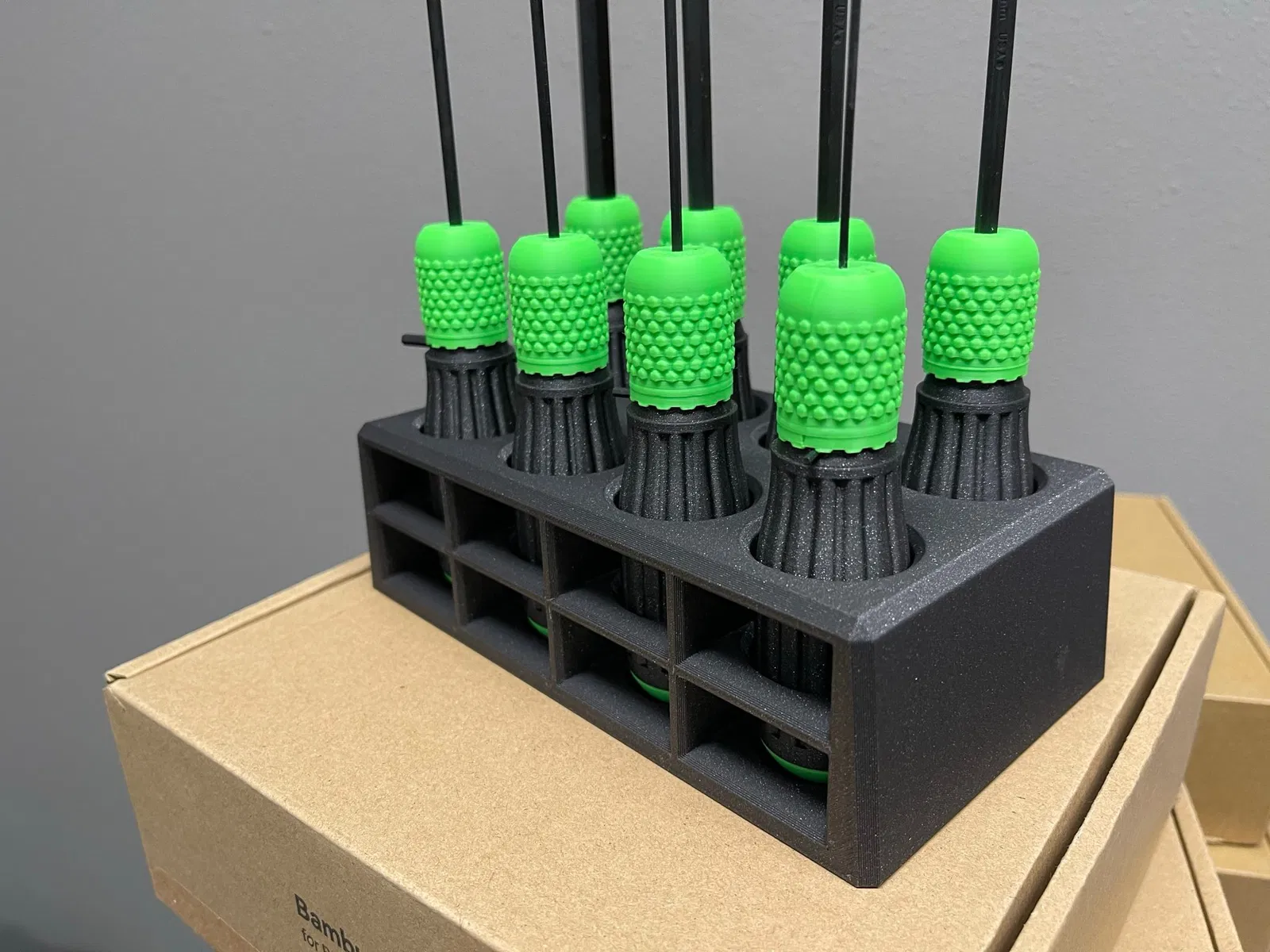 Đế giữ bộ lục giác Allen Key của bạn do @OlleMark tạo ra. Thiết kế này giữ 8 kích cỡ lục giác với tay cầm hướng xuống, giúp đế nhỏ gọn hơn. In đơn giản, không cần hỗ trợ. Giữ cho không gian làm việc của bạn gọn gàng!