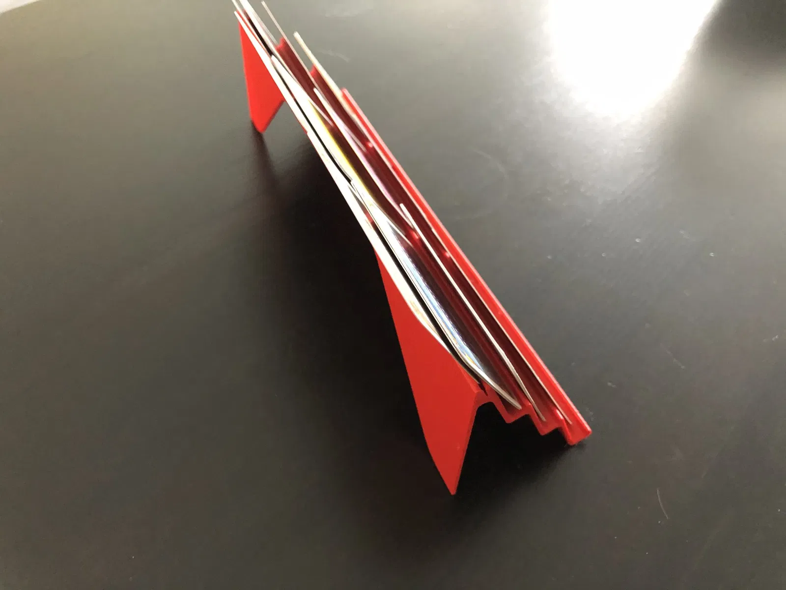 Đầu tiên, chúng tôi đã sử dụng một bộ thẻ bài từ Triomino's, điều này đã dẫn đến thiết kế này cho một giá đỡ thẻ bài 4 tầng. Nó có thể chứa nhiều thẻ bài, chúng sẽ không bị rơi, nó thực sự ổn định và có thể xếp chồng lên nhau.