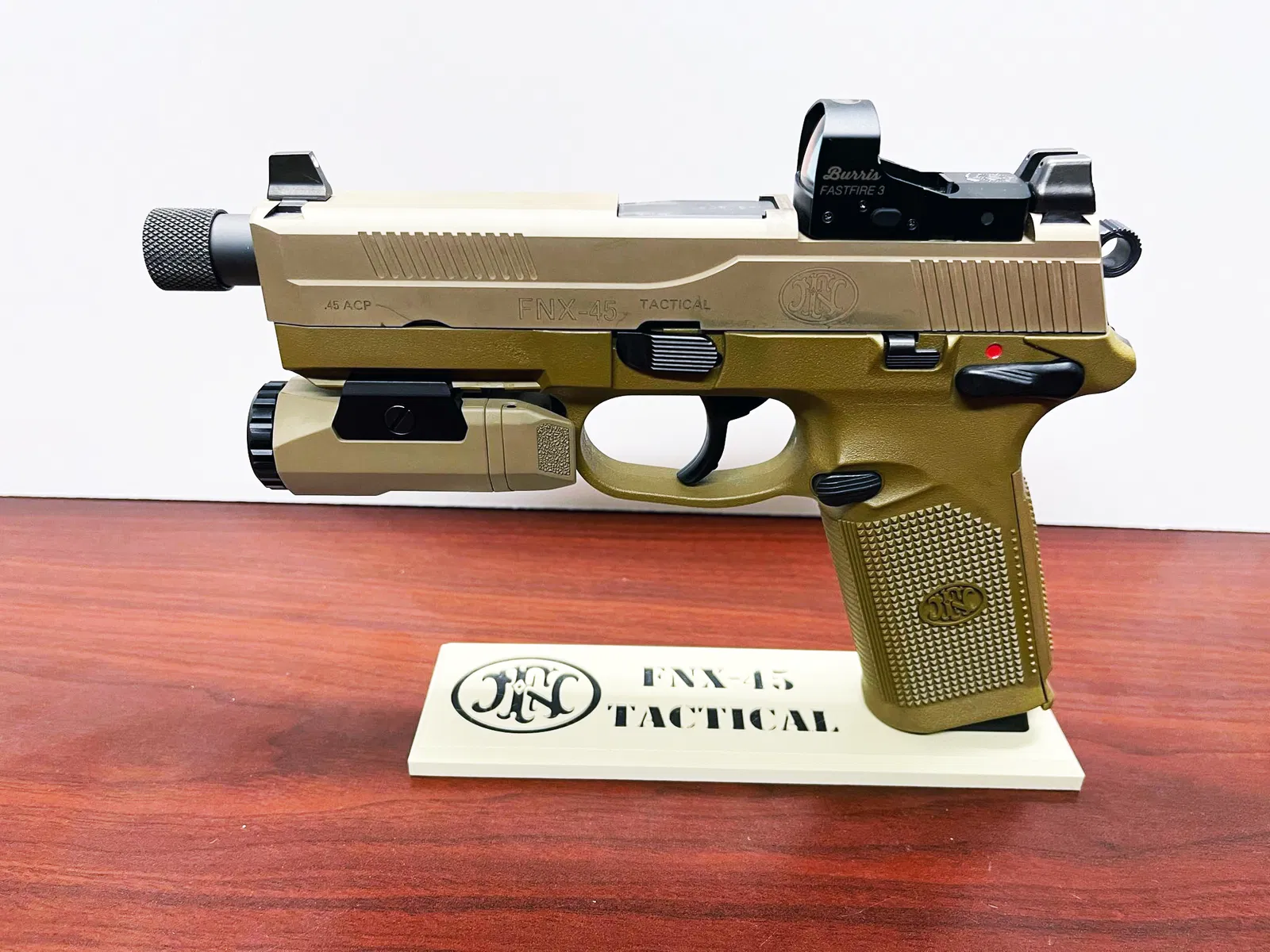 Đây là một cái đế để trưng bày khẩu FNX-45 Tactical của tui. In không cần support, dễ lắm nha. Tui in bằng máy Bambu Lab X1C với AMS để có hiệu ứng đa màu nè.