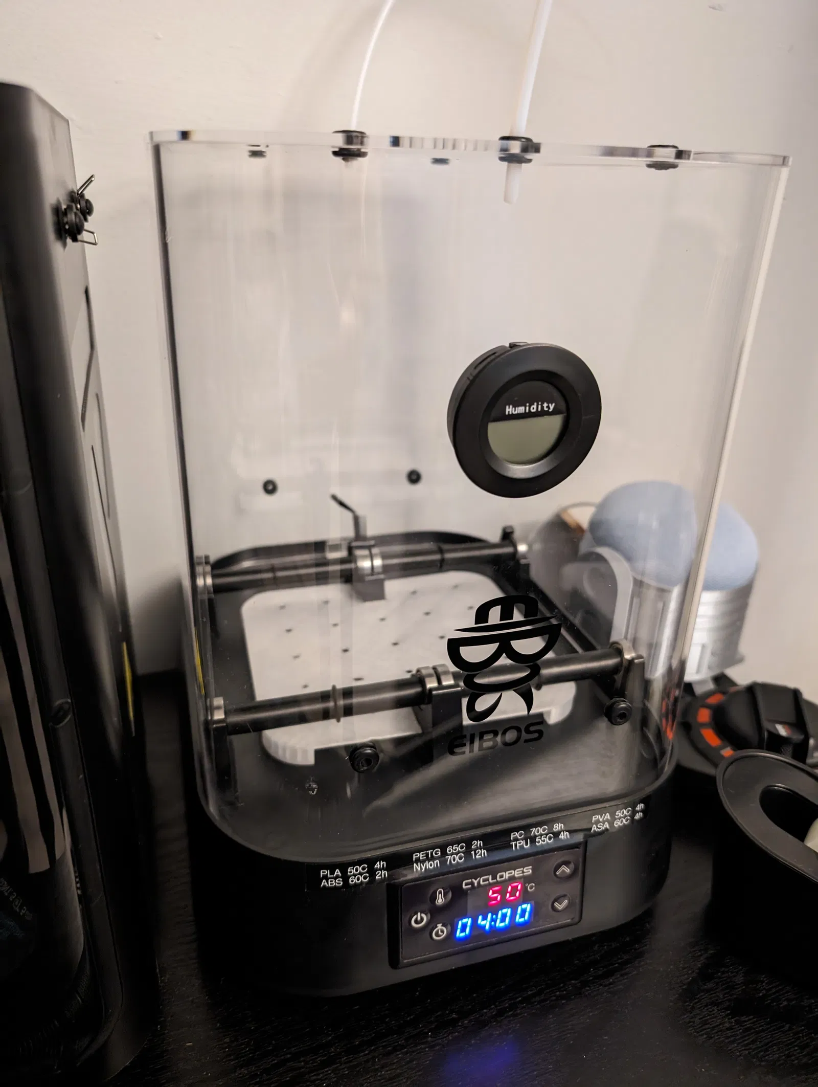 Tấm chắn nhiệt cho máy sấy filament Eibos Cyclopes. Phiên bản này được cải tiến với chân đế chắc chắn, giảm rung lắc và thiết kế bo tròn. Khuyến cáo sử dụng Polycarbonate để đảm bảo an toàn, tránh nguy cơ cháy nổ với PLA/PETG/ABS.