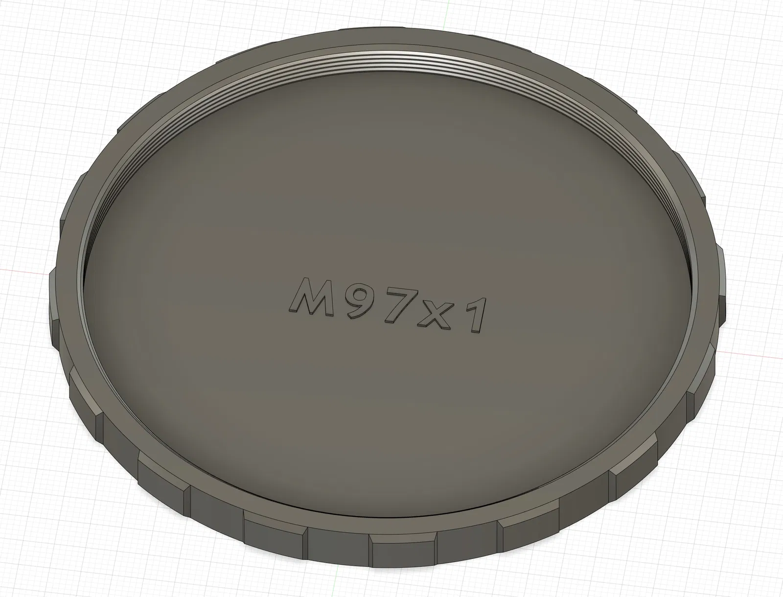 Nắp chụp bụi ren M97x1, có cả đầu đực và đầu cái, chuyên dụng cho thiên văn học. Rất phù hợp cho các thiết bị như máy ảnh, kính thiên văn Stellarvue SVX080T. Được in bằng PLA+ cho ren đẹp hơn.