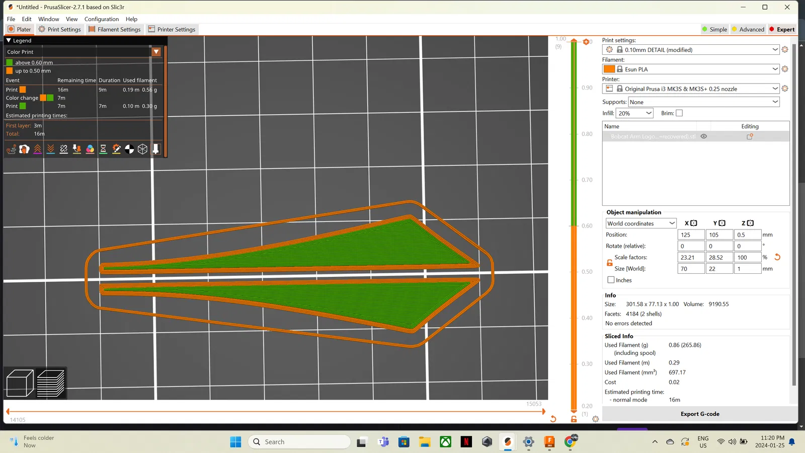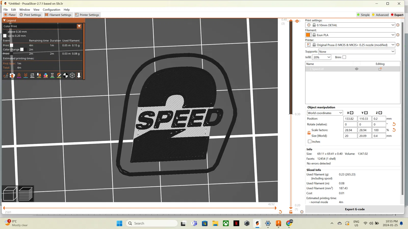 khuyên in với nozzle 0.2mm in ở độ cao lớp 0.1mm têm thay đổi màu ở độ cao lớp 0.5mm Cập nhật 30/01/2024 Thêm logo.