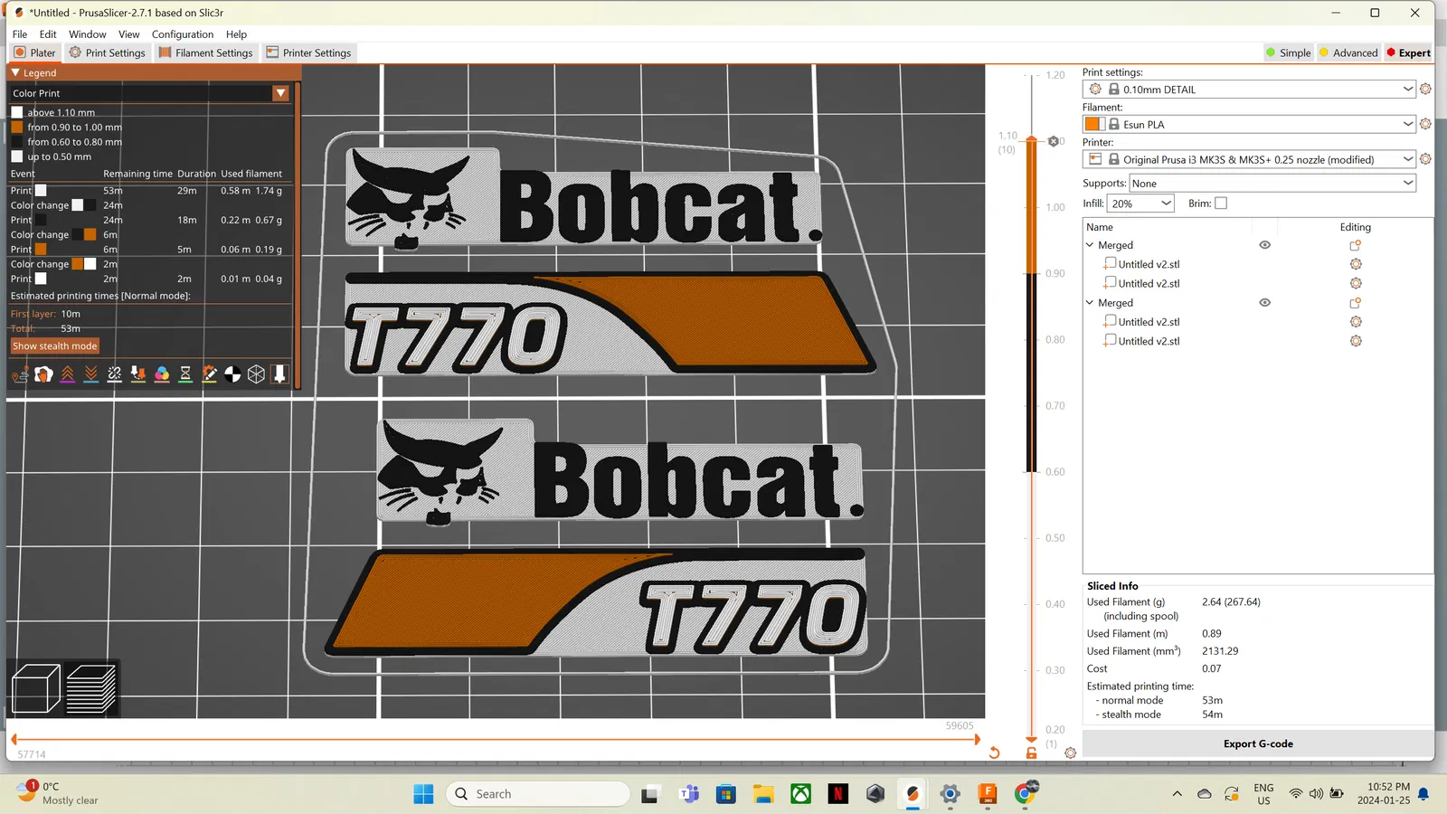 Làm một cái logo Bobcat nhanh cho Cổng Cuối của Xe Tải Trọng Lái (Skid Steer Loader) do AN3DRC sản xuất. Khuyên in với nozzle 0.2mm, độ cao lớp 0.1mm và thêm thay đổi màu ở lớp 0.5mm. Cập nhật thêm logo mới.