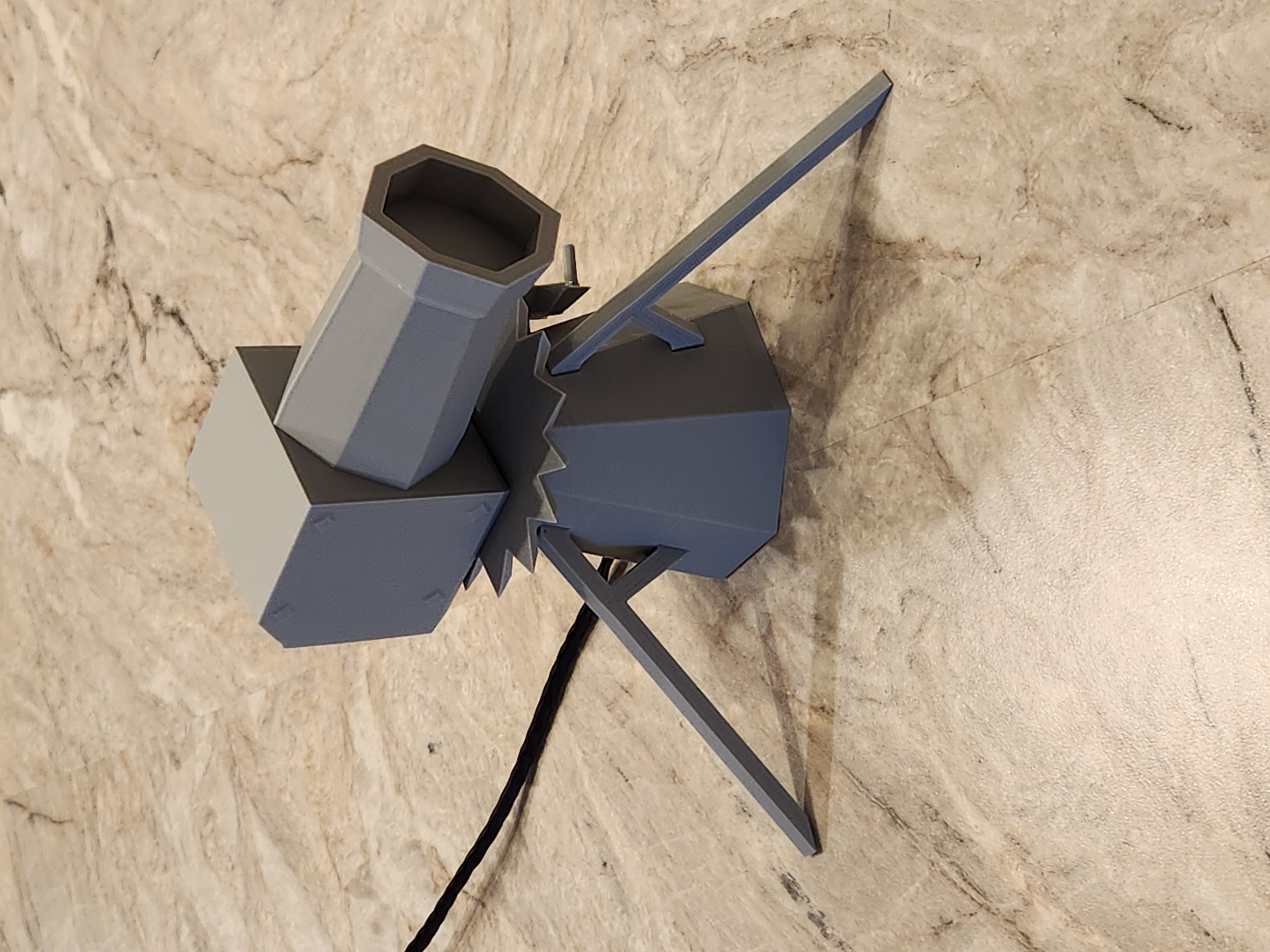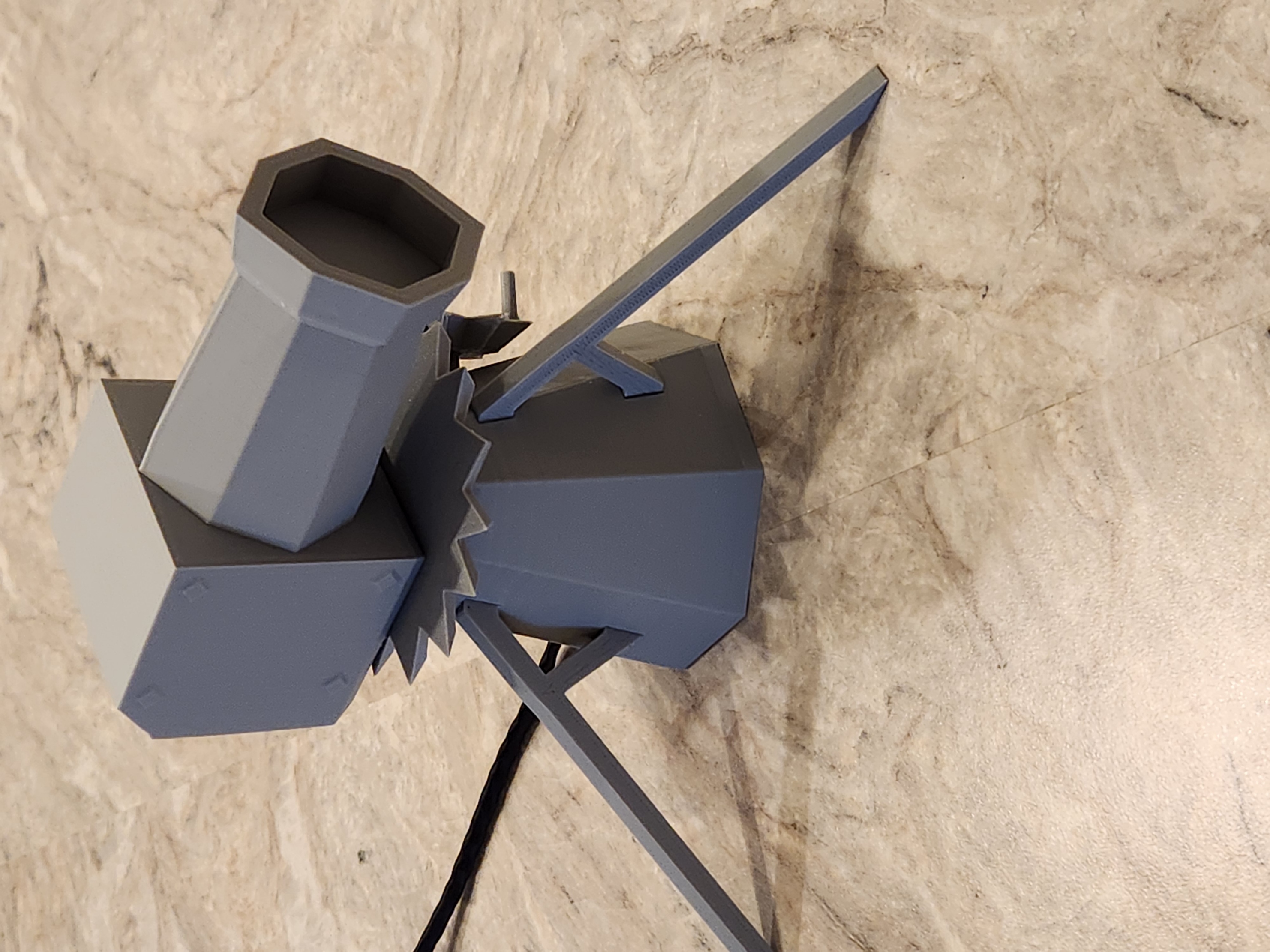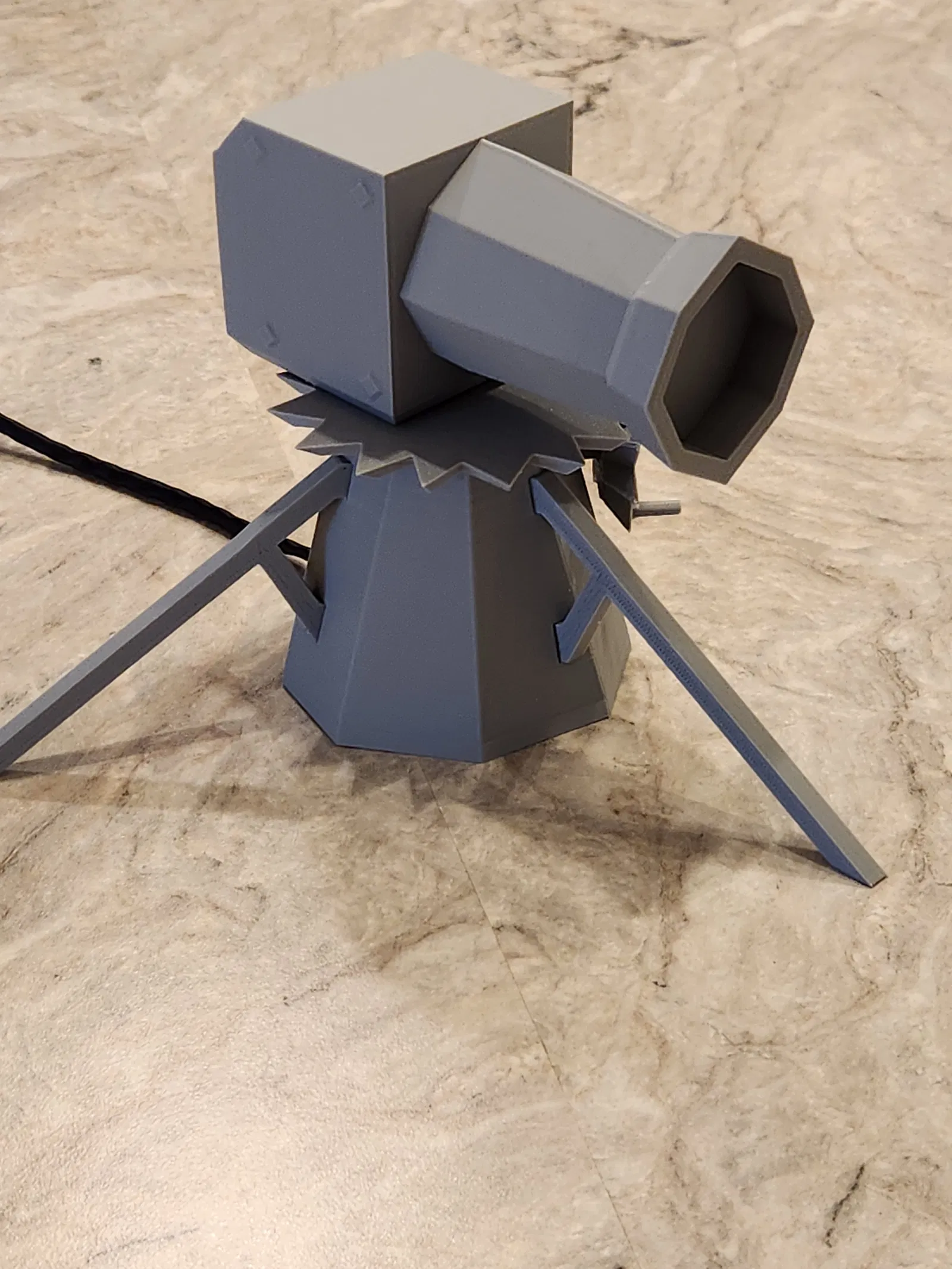 Xem bản Ver 2 để có setup tích hợp hơn nhé. Đây là Mô hình Dwarf Multi Cannon có động cơ từ game Old School Runescape. Bản gốc từ bạn Engineer4fun. Tui dùng Arduino nano để điều khiển motor bước. (Xoay 45 độ rồi dừng khoảng 18 vòng/phút y chang trong game) Xem code đính kèm cho nano nha. Tui dùng Motor bước 28BYJ-48 với Driver ULN2003, cả hai đều nằm gọn trong phần đế. Nano kết nối với driver bằng 6 sợi dây 24 awg, cấp nguồn qua mini usb. Thêm thông tin về motor bước tui dùng. Chi tiết: Điều khiển Motor bước 28BYJ-48 với ULN2003 Driver & Arduino (lastminuteengineers.com) ### Cài đặt in Hãng máy in: Creality Máy in: Ender 3 Pro Hỗ trợ in: Có ở một vài bộ phận Độ phân giải: 0.2 Infill: 30 Nhựa in: OVERTURE PLA Plus Màu Xám Nhạt (cho phần vỏ Nano tui dùng TPU 95) Lưu ý: Tấm đế hơi chật, bạn có thể scale nhỏ lại chút (1-5%) nha.