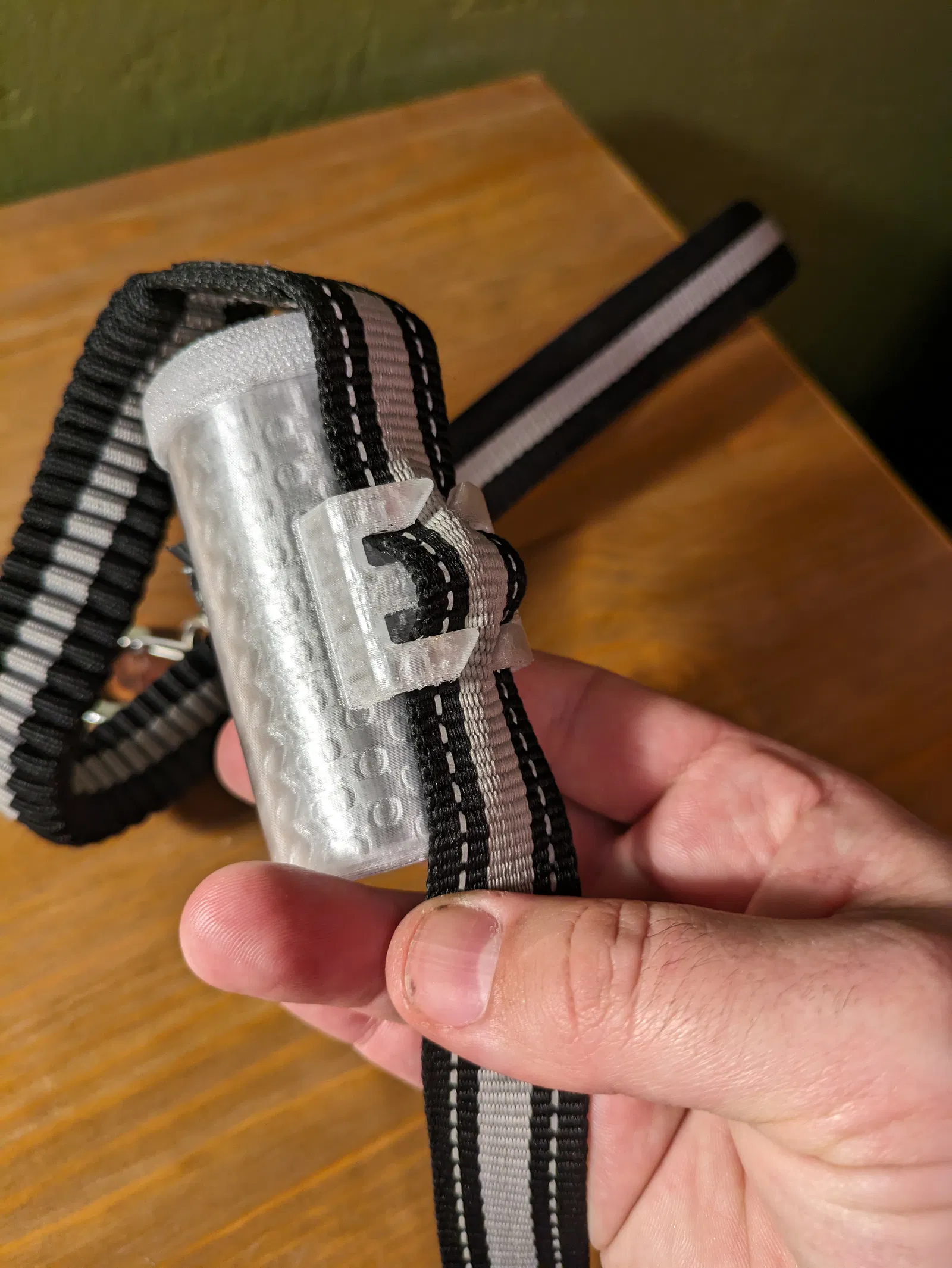 Hộp đựng túi vệ sinh gắn dây dắt chó, giúp bạn dễ dàng lấy túi và bỏ túi. Thiết kế thông minh, dễ gắn, dễ sử dụng, in bằng PLA hoặc PETG. Thích hợp cho dây dắt rộng 1 inch.