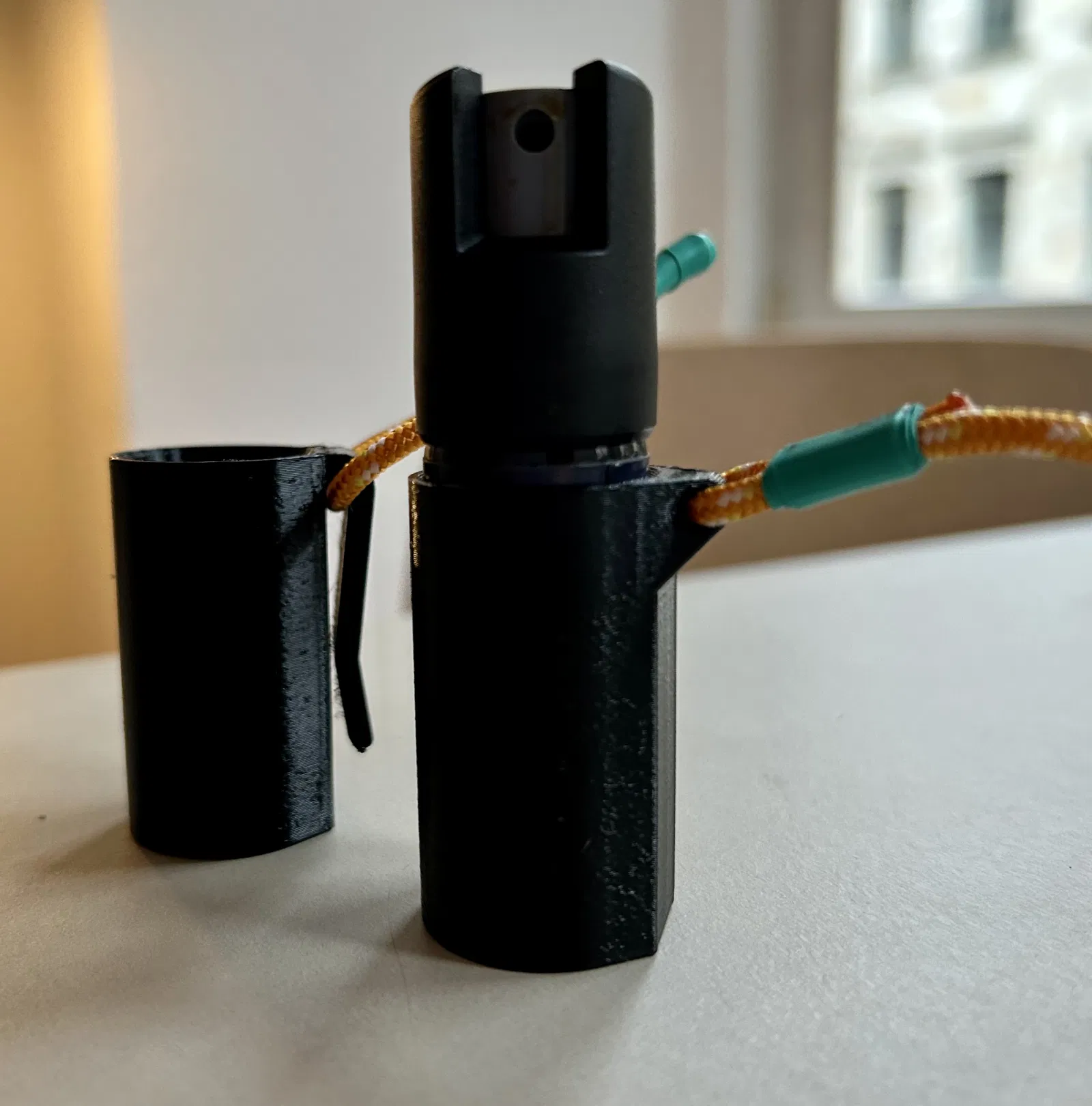 Hai mẫu bao đựng cho bình xịt hơi cay Walther ProSecure cỡ nhỏ 16ml. Dễ dàng gắn vào xe hoặc mang theo, có tệp Fusion 360 để tùy chỉnh theo kích thước. In bằng PETG, có phiên bản kẹp và phiên bản thông thường.