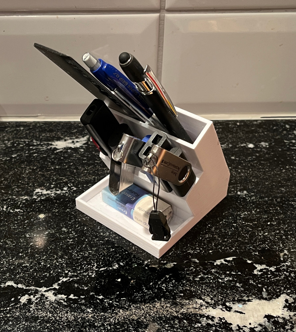 Cái này để giữ viết, thước kẻ và USB đó bay. Thiết kế nhỏ gọn, tiện lợi cho bàn làm việc của bạn, giúp giữ mọi thứ ngăn nắp.