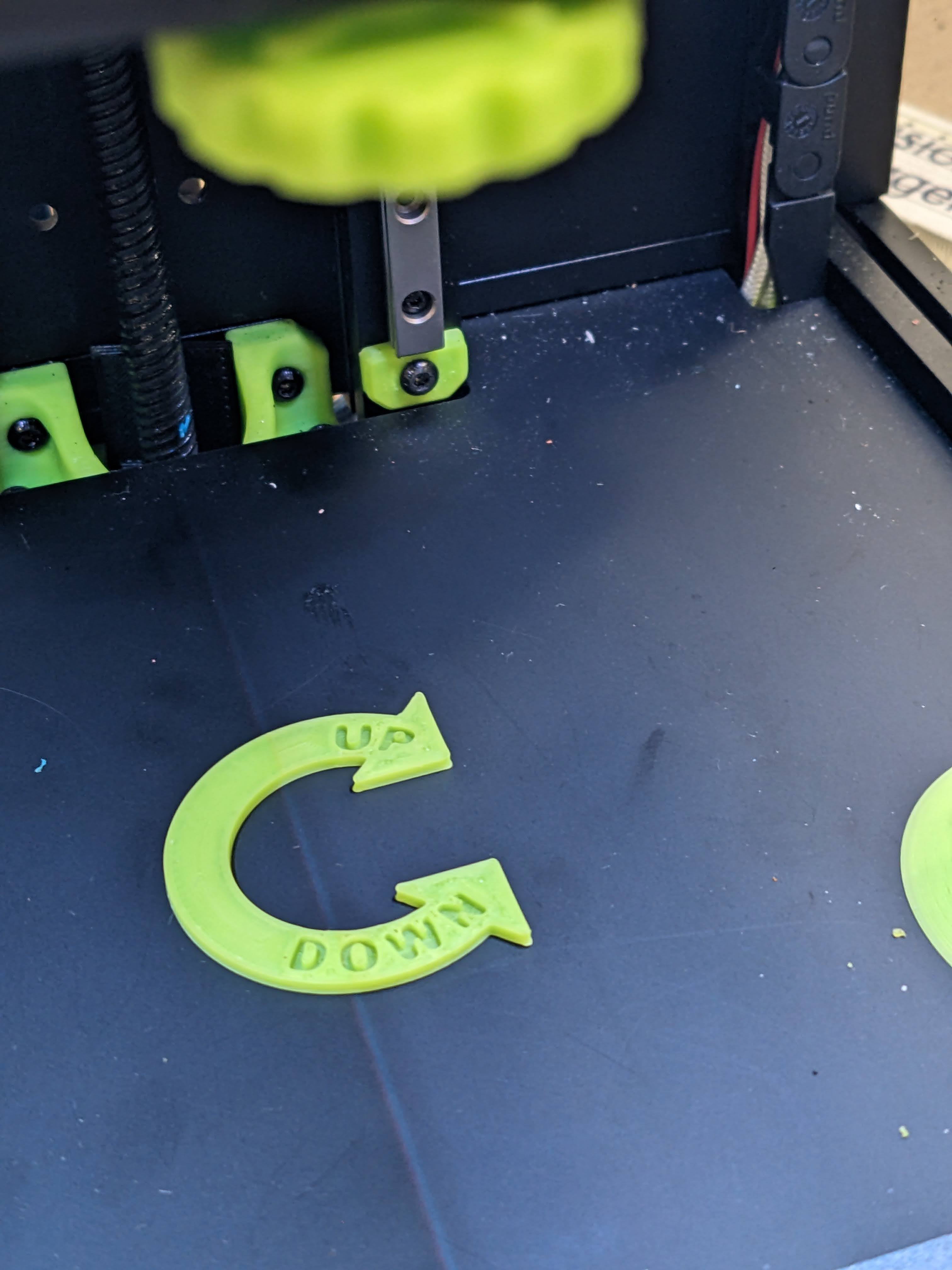 Cái này là cái chỉ báo cho ốc chỉnh mặt phẳng bàn in, có cái mặt phẳng phía dưới để anh em cứ thế mà đặt hoặc dán vô máy in của mình thôi. Anh em cứ chỉnh máy in và vật liệu cho phù hợp với cấu hình của mình nha.