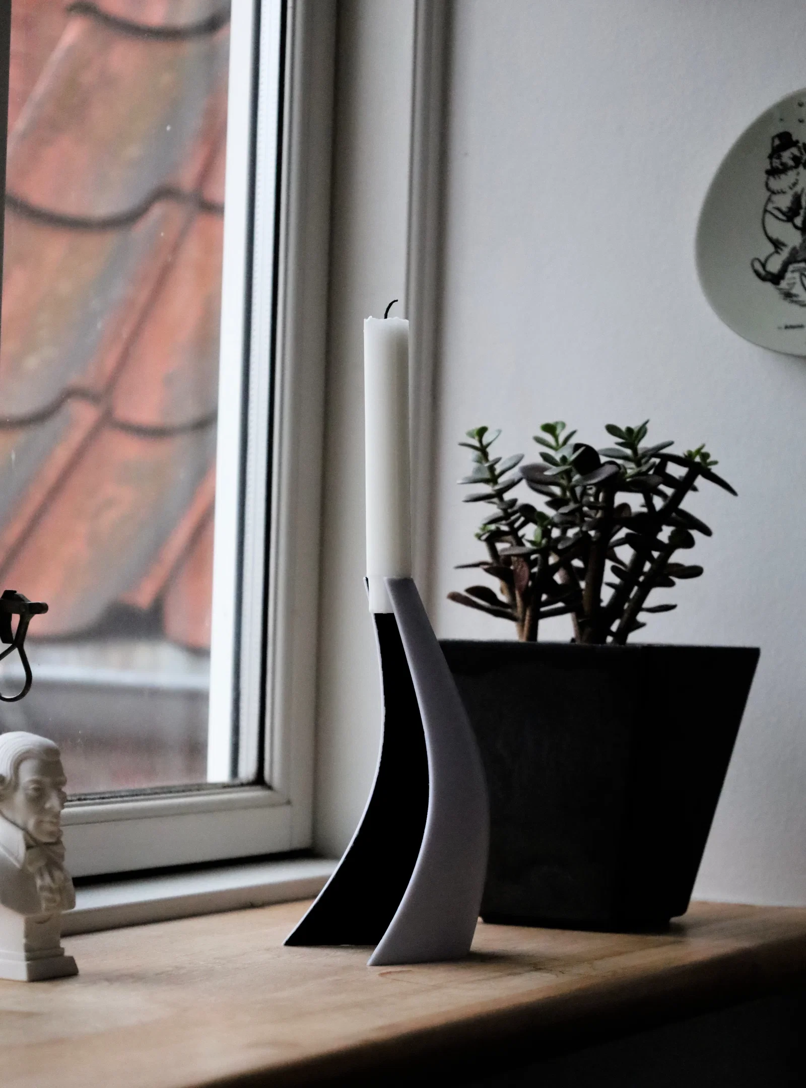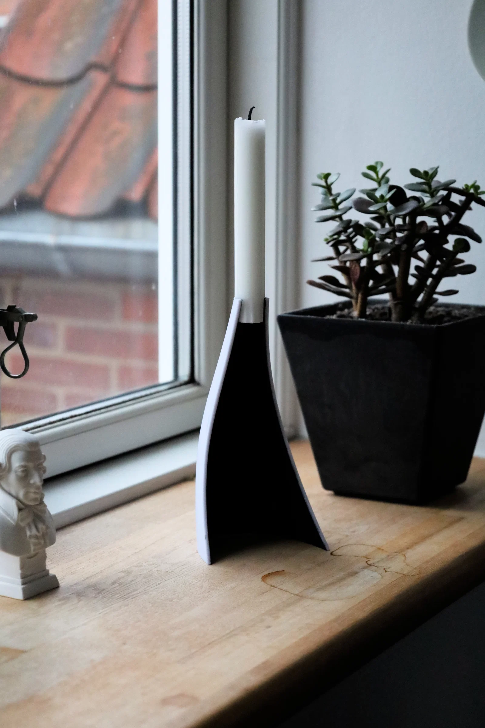 Chân nến Candle V28 có thiết kế rỗng, phù hợp với nến 21mm. Phần bên trong được sơn đen. Để bản in ổn định, hãy in với brim dày và giảm tốc độ in cho các lớp đầu. Có thể dùng fuzzy skin hoặc chà nhám để tăng độ bám trước khi sơn.