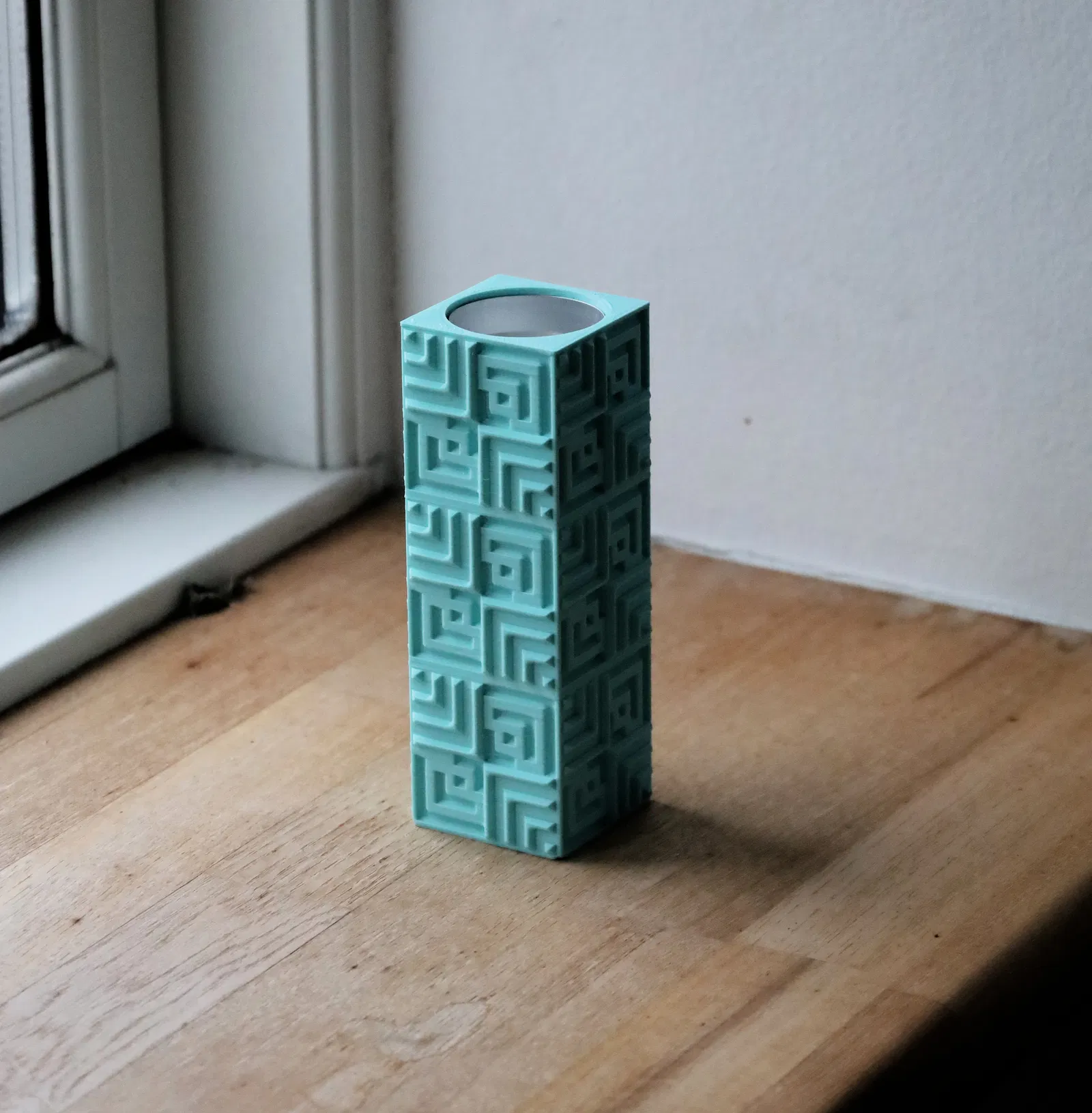 Chân nến tealight lấy cảm hứng từ hình khối đơn giản. Mô hình này khuyên dùng độ cao lớp in dưới 0.15mm, kiểu độn "lightning infill" để tiết kiệm vật liệu và thời gian, và tránh dùng "fuzzy skin" để đảm bảo chất lượng in tốt nhất.