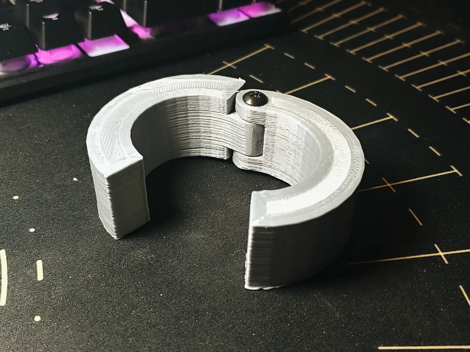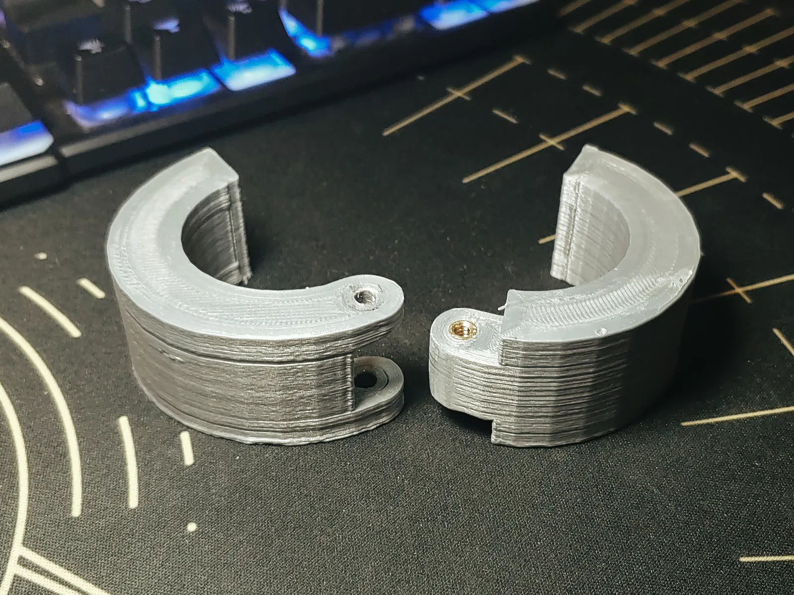Tao đã thiết kế cái kẹp đệm đơn giản này để gắn vào thân micro, làm cho đường kính của nó lớn hơn khoảng ~20mm. Nó được in thành 2 mảnh, thiết kế để gắn 2 cái ốc ren nhiệt. Tao dùng ốc ren nhiệt EZ-Lok 6/32, mã số #240-006-BR.