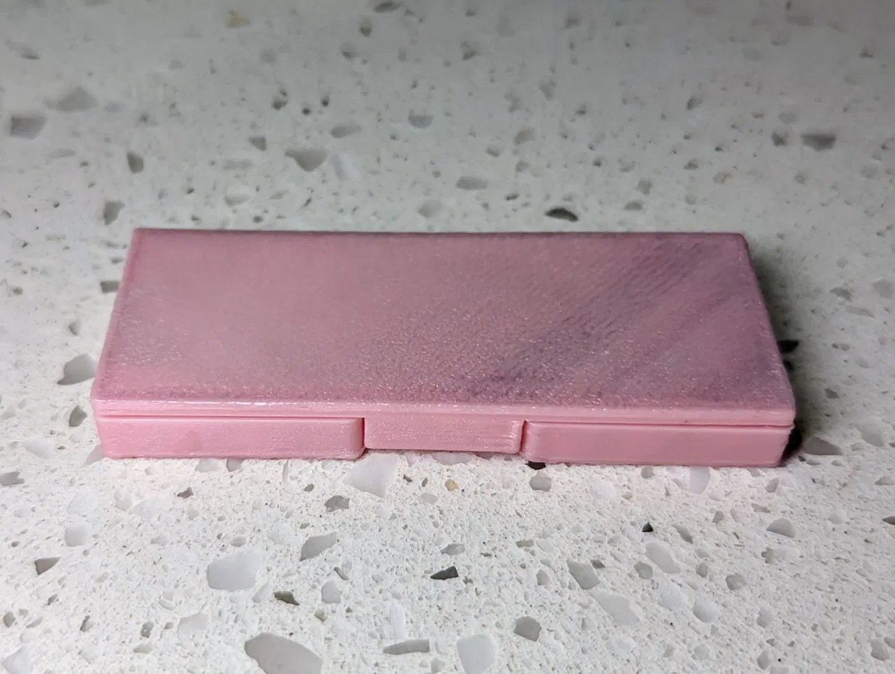 Đây là một chiếc hộp mỏng dùng để đựng phấn mắt hoặc phấn má có kích thước 20x66. Bạn có thể nối nắp với hộp bằng một sợi dây dài hoặc bằng hai đoạn ngắn hơn.