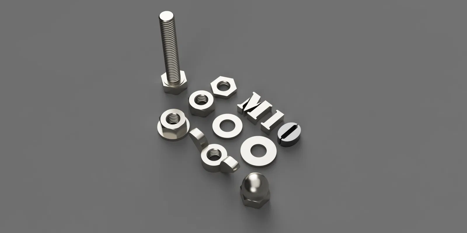 Bộ sưu tập chi tiết bu lông, đai ốc lục giác M10 với các kích thước từ 5mm đến 100mm. Tệp được xuất với dung sai chặt chẽ, phù hợp cho nhiều ứng dụng in 3D. Lưu ý điều chỉnh bù lỗ X/Y theo máy in để đạt độ vừa khít tối ưu.