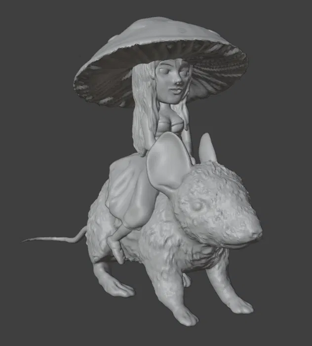 Xin chào mọi người. Gặp cô tiên nấm bé nhỏ, người bảo vệ khu rừng. Cô ấy cưỡi chú chuột của mình băng qua rừng một cách vô hình để bảo vệ thiên nhiên yêu quý. Chú chuột mà cô ấy cưỡi là chú chuột mà tui đã đăng trước đó.