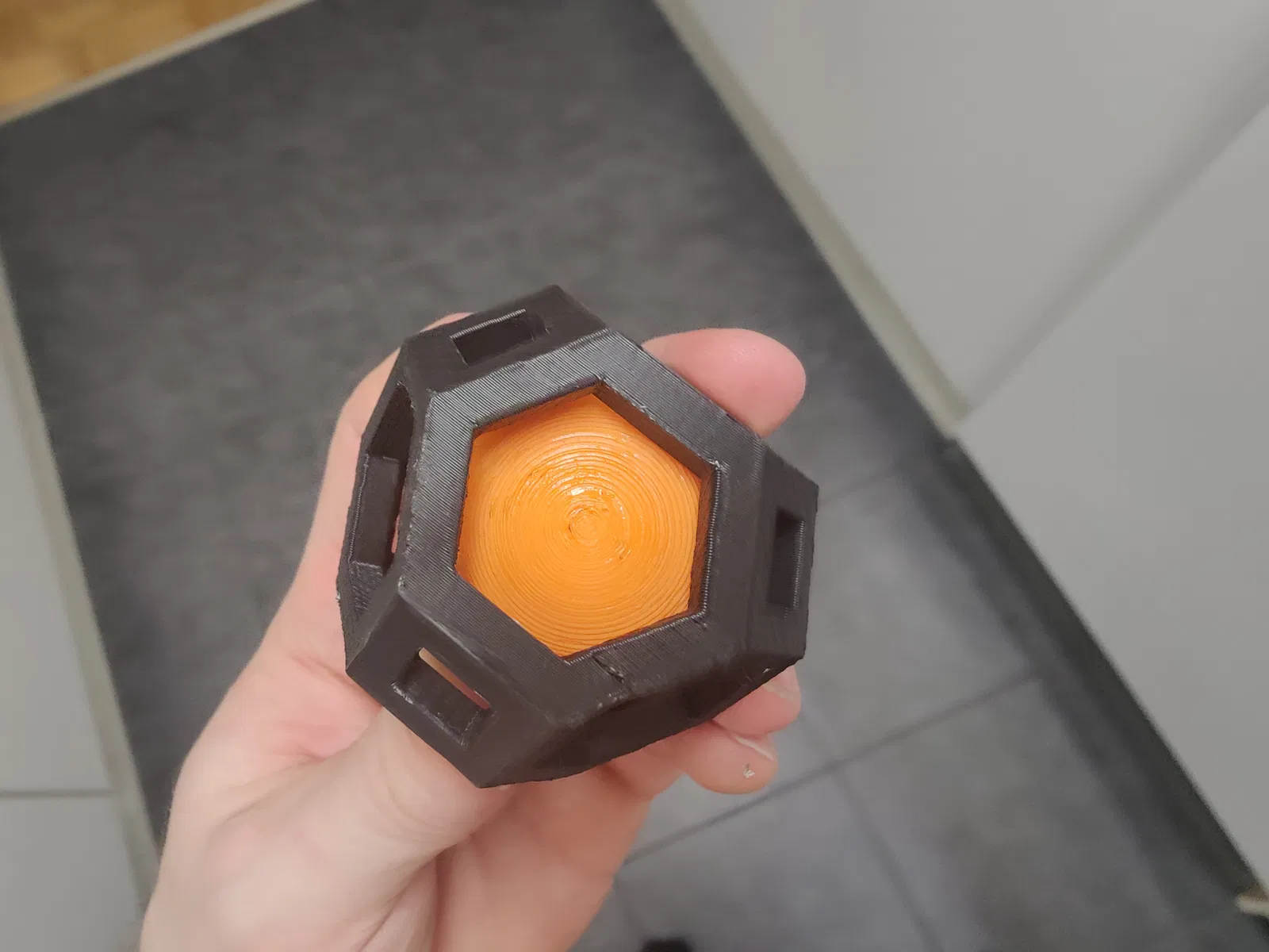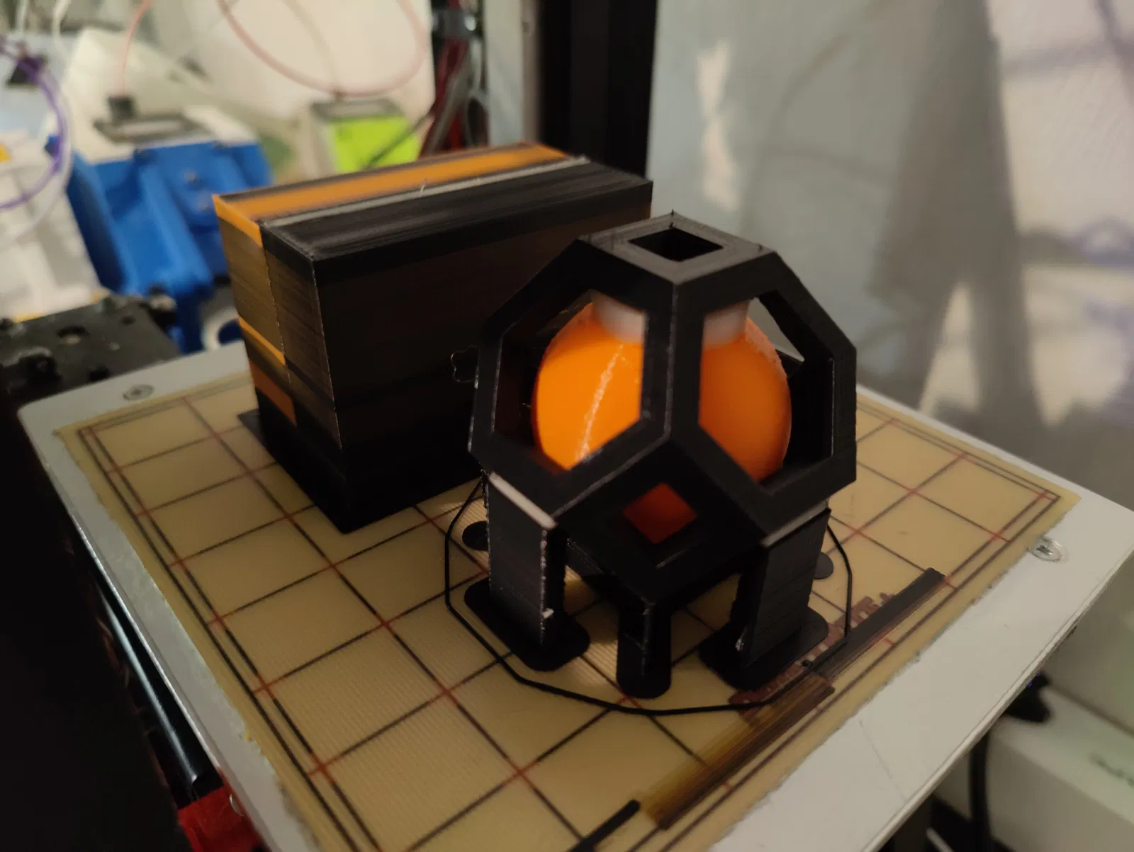 Chế tạo chân đế bằng vật liệu hòa tan cho mô hình đa giác không tưởng có chân đế hình cầu. Yêu cầu máy in đa vật liệu, khuyến khích dùng BVOH hoặc PVA.