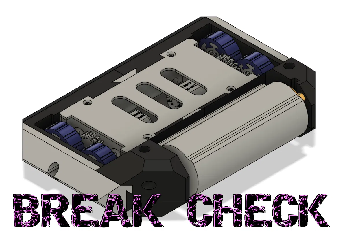 Break Check là robot chiến đấu bằng nhựa 1lb, được thiết kế cho giải đấu WPI plastic ant. Robot này có thể in hoàn toàn trên bàn máy in Voron v0, với cấu trúc module và spinner. Cần thêm một số linh kiện điện tử như động cơ và ESC. Thiết kế đang được cải tiến và hoàn thiện.