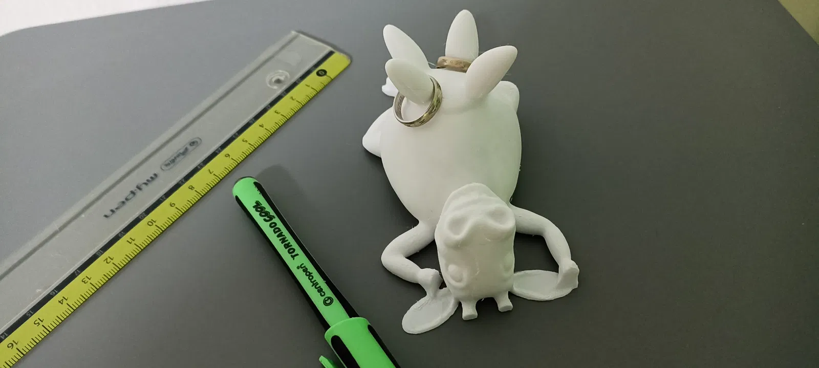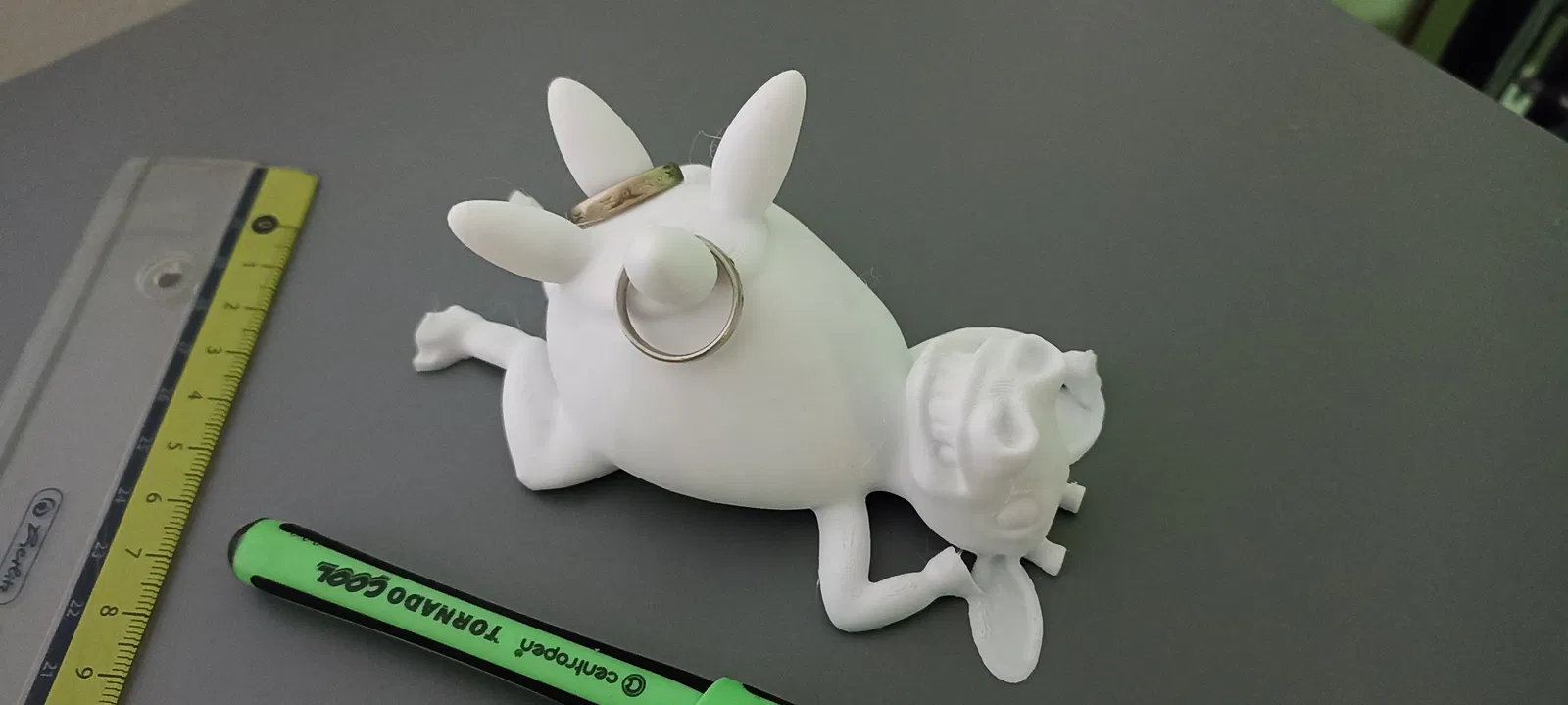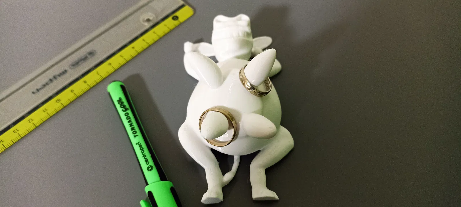 Một chú bò vui vẻ với phần vú dùng để đựng nhẫn hoặc bút.