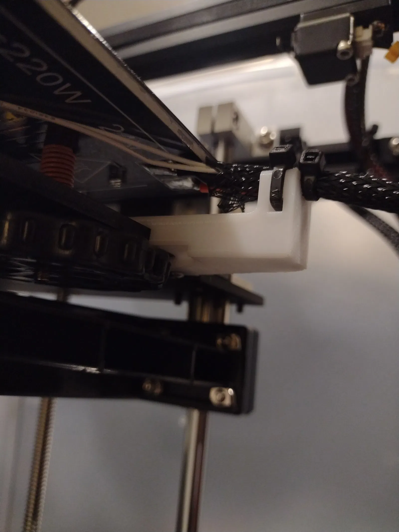 Cái này là bộ phận chống căng dây cáp giường cho máy Sovol SV05 nè. Gắn vô gọng giường bằng ốc M3, có luôn khe để siết dây rút cho gọn. Xài nozzle 0.6mm, lớp 0.3mm, chất liệu PETG là ok đó.