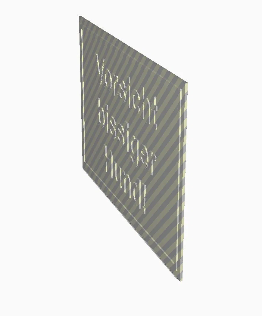 Biển báo "Cẩn thận chó dữ" (Vorsicht Bissiger Hund - Schild) là một mô hình 3D độc đáo, hoàn hảo để cảnh báo những vị khách về sự hiện diện của một chú chó có thể hung dữ. Tuyệt vời cho những ai muốn thêm một chút hài hước hoặc nghiêm túc vào ngôi nhà của mình.