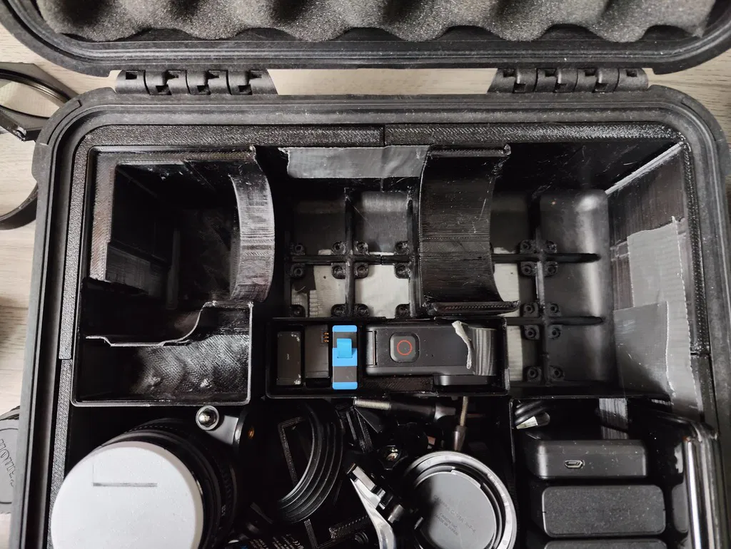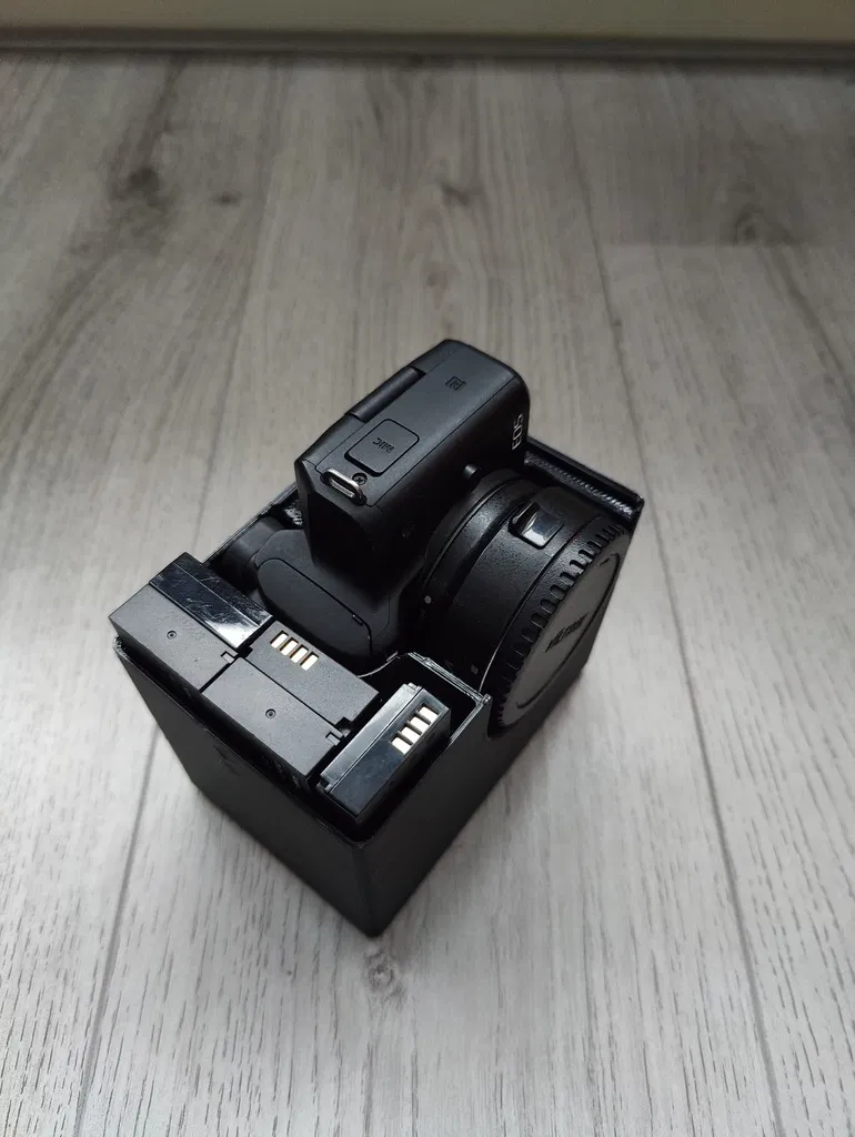 Khay Gridfinity tùy chỉnh cho máy ảnh Canon M50, kích thước 3x2x13. Có ngăn nhỏ đựng vừa 5 viên pin, đã được chỉnh sửa để in khít hơn. Hoàn hảo cho việc tổ chức đồ đạc của bạn.