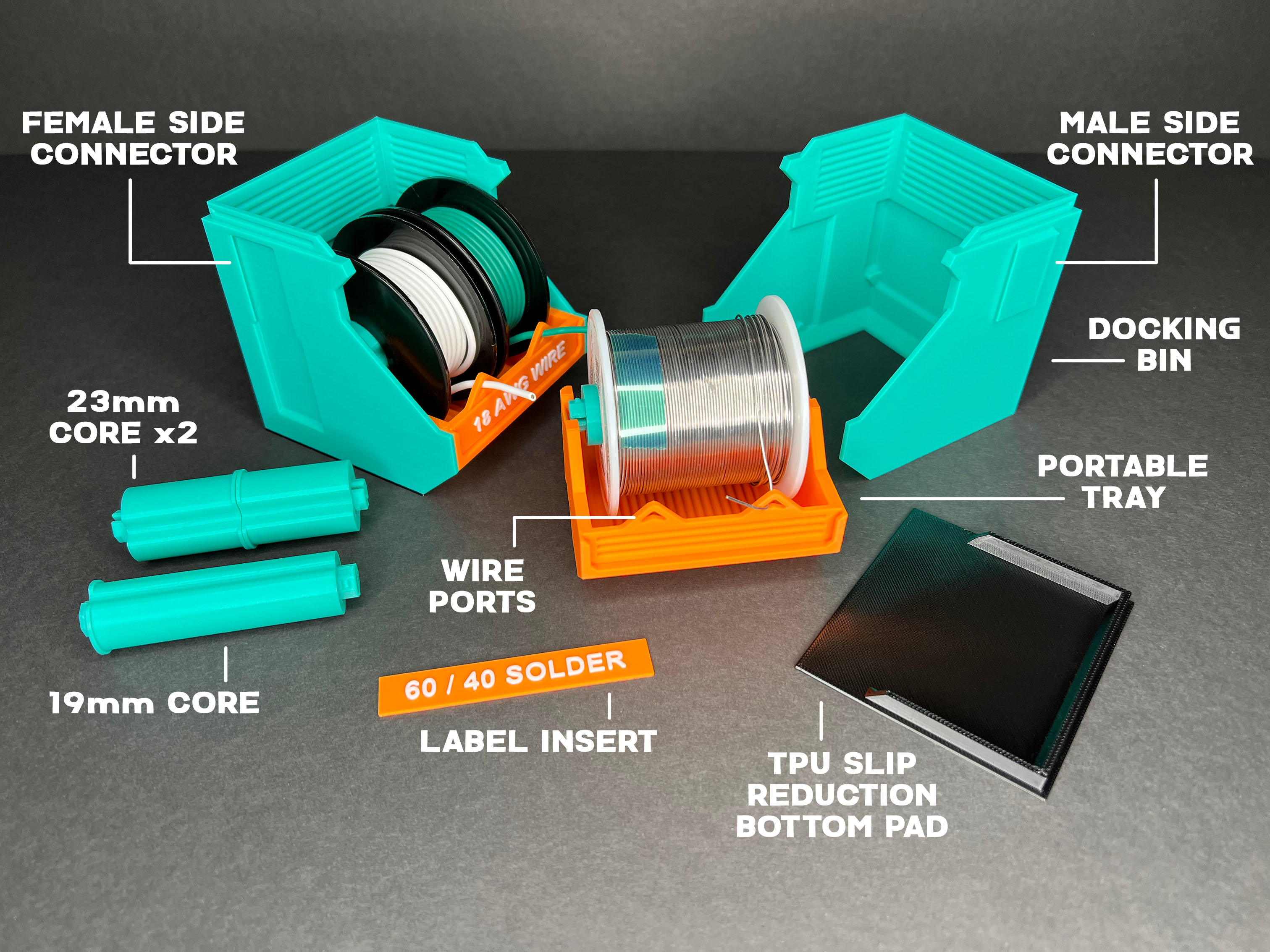 Infinity Spool Holders là một hệ thống lưu trữ và quản lý dạng module dành cho các cuộn dây, thiếc hàn, dải băng, và nhiều hơn nữa!