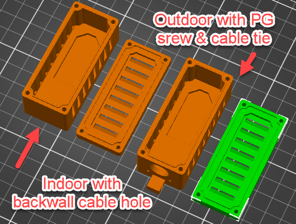 Vỏ bọc bảo vệ và thông thoáng cho cảm biến của bạn, chống nước nhờ thiết kế mở 40 độ. Có phiên bản trong nhà và ngoài trời với các tùy chọn lắp đặt cáp khác nhau, sử dụng vít M2 và ren cấy. Vỏ được làm bằng PETG để chịu được các yếu tố môi trường.