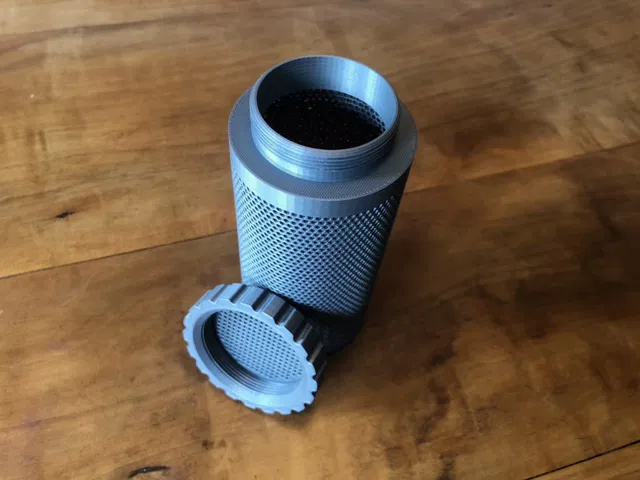 Hộp đựng gel hút ẩm này chứa được 250g và có kích thước 65 x 140mm. Nó vừa vặn hoàn hảo với hộp đạn NATO cỡ 7 và yêu cầu máy in có độ chính xác tương đối để in phần ren. In không cần vật liệu hỗ trợ.