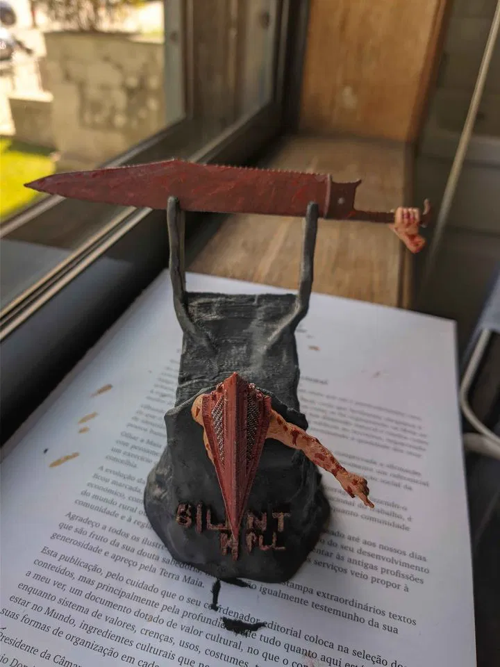 Mô hình giá đỡ tay cầm lấy cảm hứng từ nhân vật Pyramid Head trong Silent Hill. Thích hợp để trưng bày tay cầm PS4 hoặc các loại tay cầm console khác. Sản phẩm được in với tỉ lệ 10%.