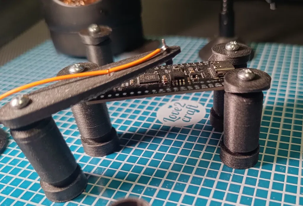 cho các đầu dò: một miếng kim loại như cây đinh nhỏ, pogo-pin, v.v. và một ít dây điện. Cái đầu có đầu nhọn rộng hơn có thể dùng để chế tạo các jig nháy đèn tùy chỉnh cho thiết bị. Dung sai sẽ phải cực kỳ khít để vừa vặn nên tôi quyết định để người dùng tự khoan lỗ cho nó.
