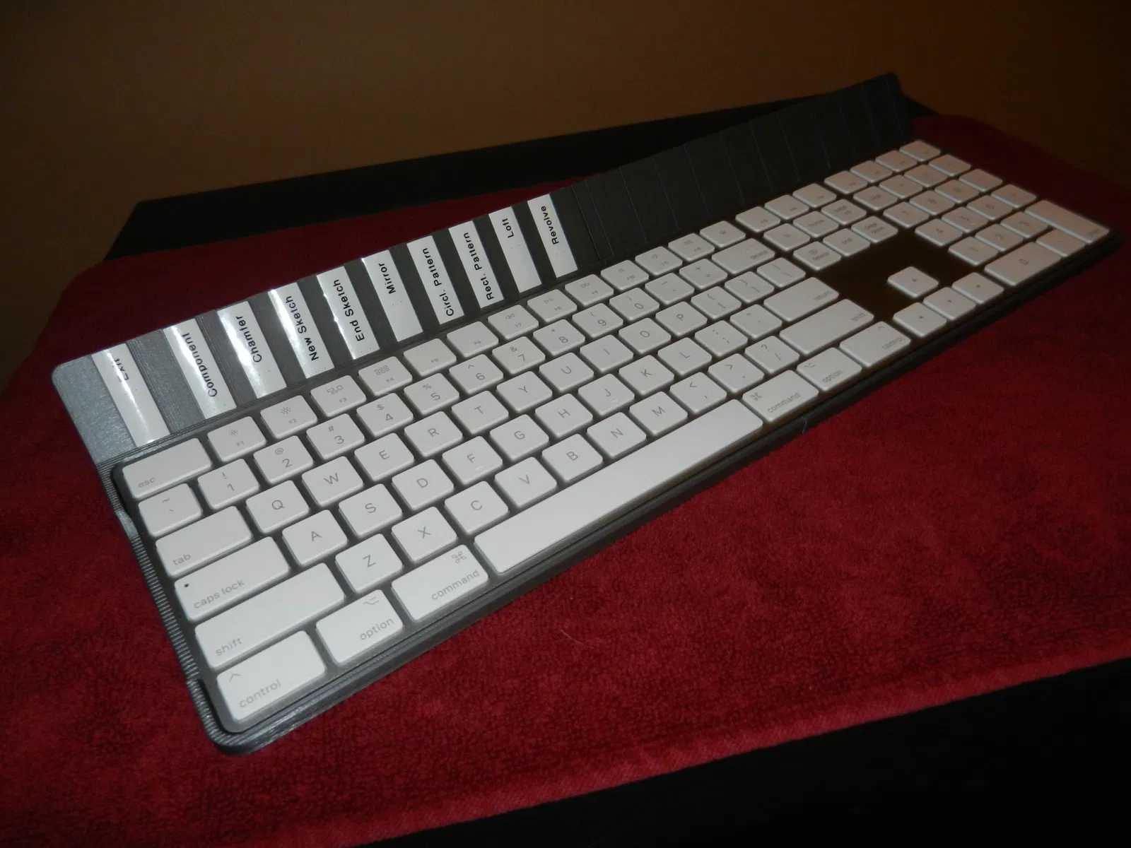 Tôi đã thiết kế khay bàn phím này cho Bàn phím Magic của Apple với Bàn phím số. Nó bao gồm một bảng để thêm nhãn phím “F” cho các phím tắt trong Fusion 360. Các nhãn này là nhãn tiêu chuẩn “Brother Labeler 12mm TZ Tape” hoặc bạn có thể sử dụng các dải giấy. Chúng trượt vào các rãnh nên bạn không cần keo dán.