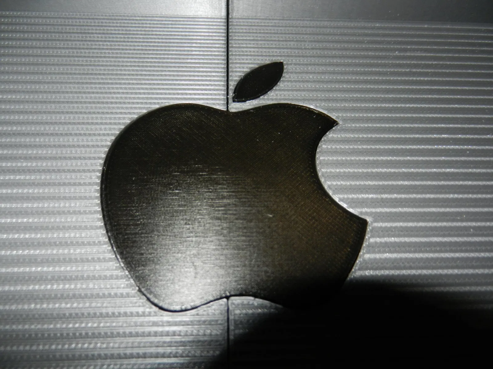 Hai phần ghép lại với nhau bằng mộng và sau đó khóa lại bằng logo của apple.