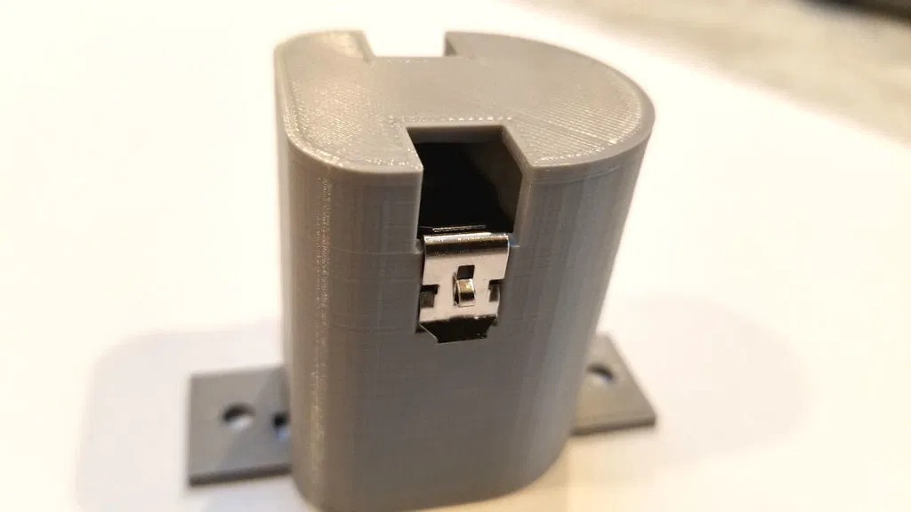 Tôi đã lấy thiết kế nguồn và thêm các tab gắn, cải thiện khả năng khóa của pin vào giá đỡ và thiết kế lại tháp để sử dụng các đầu nối Keystone 209. Giá đỡ mới này gài pin vào đúng vị trí và có các tính năng để khóa các đầu nối pin vào vị trí mà không bị trượt lên.