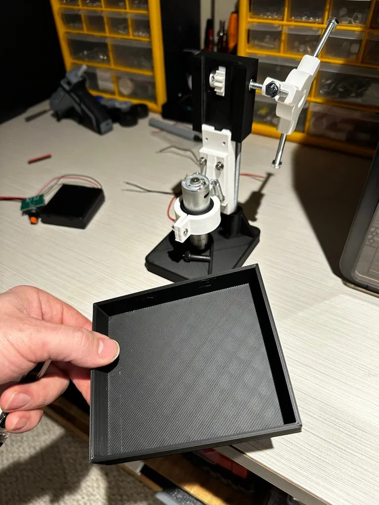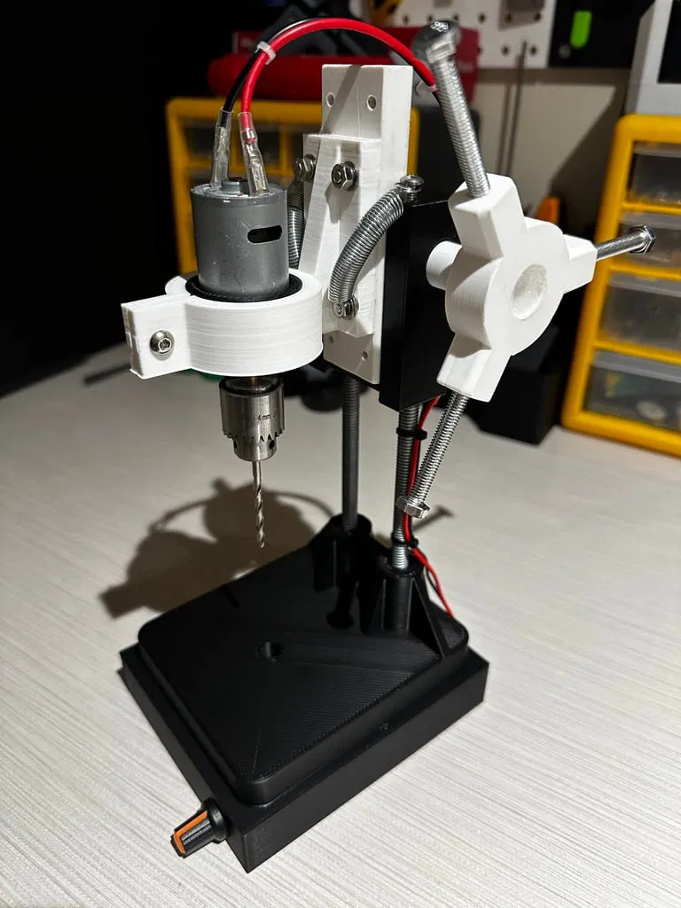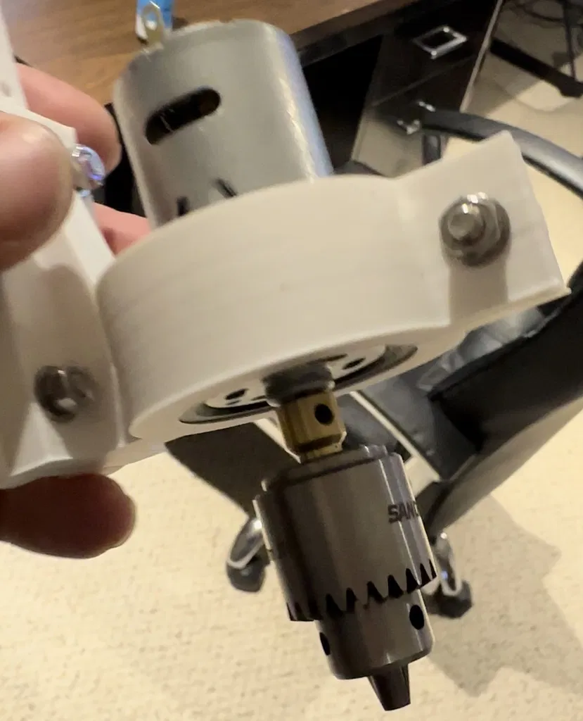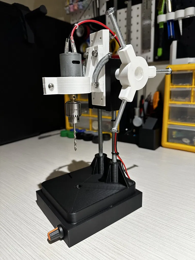 Tui đã chỉnh sửa từ thing:2763330 vì tui muốn xài cái mũi khoan điện tử thủ công 12V rẻ tiền (Bộ khoan tay) mà bên Amazon bán. Link: https://www.amazon.com/AUTOTOOLHOME-Electric-Drill-Motor-Drills/dp/B01LZYWFE4/ref=sr_1_5?crid=33LJ1XB5N8PZY&keywords=electric+motor+drill&qid=1706632744&sprefix=electric+motor+drill%2Caps%2C90&sr=8-5 vì nó rẻ bằng nửa cái motor lớn dùng trong bản gốc này.