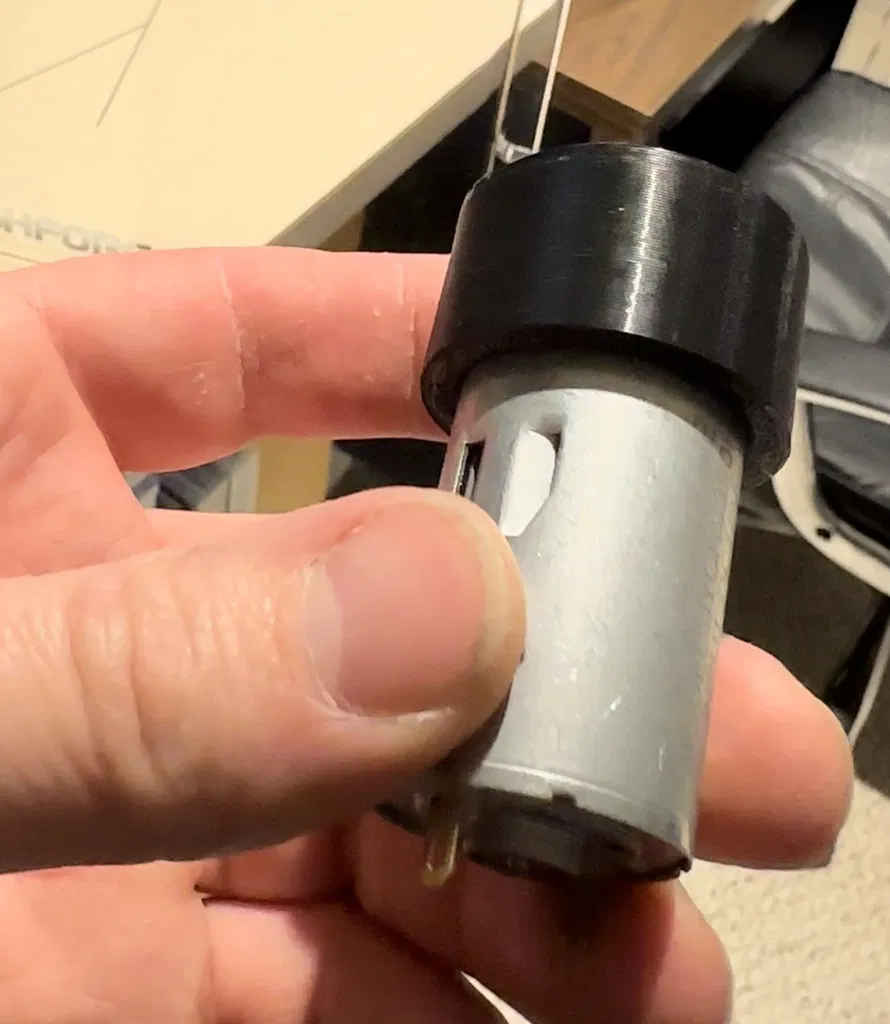 **LƯU Ý: TÙY THUỘC VÀO FILAMENT VÀ NHIỆT ĐỘ IN CỦA BẠN, BẠN CÓ THỂ CẦN CHÀ NHÁM/LÀM VÁT NHẸ LÊN MẶT TRONG CỦA CÁI ỐNG LÓT MOTOR ĐỂ CÓ THỂ TRƯỢT NÓ LÊN MOTOR DỄ HƠN NHƯNG NÓ NÊN VỪA KHÍT KHÍT
