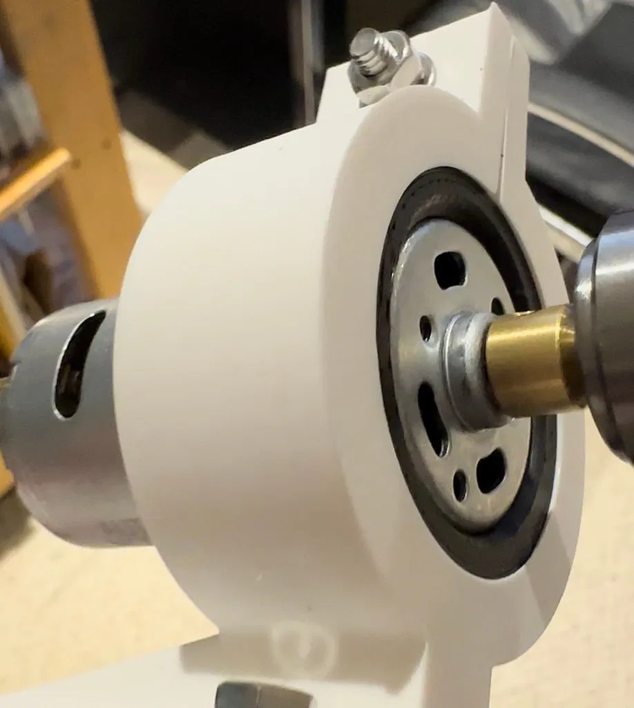Để xài cái motor khoan "trang sức" nhỏ hơn này, tui phải thiết kế cái ống lót/cái bạc lót trượt lên motor 26mm nhỏ này để gắn vô cái đế gắn motor 35mm lớn mà máy khoan này được thiết kế cho.