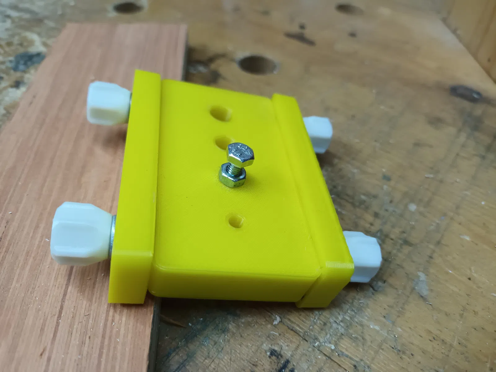 Đây là một bộ gá đơn giản, bạn chỉnh các chân có thể điều chỉnh đến chiều cao của insert cần thiết và cố định insert vào vị trí trên bu lông & ốc vít. Tôi loại bỏ vật liệu ở đầu không có ren của insert.