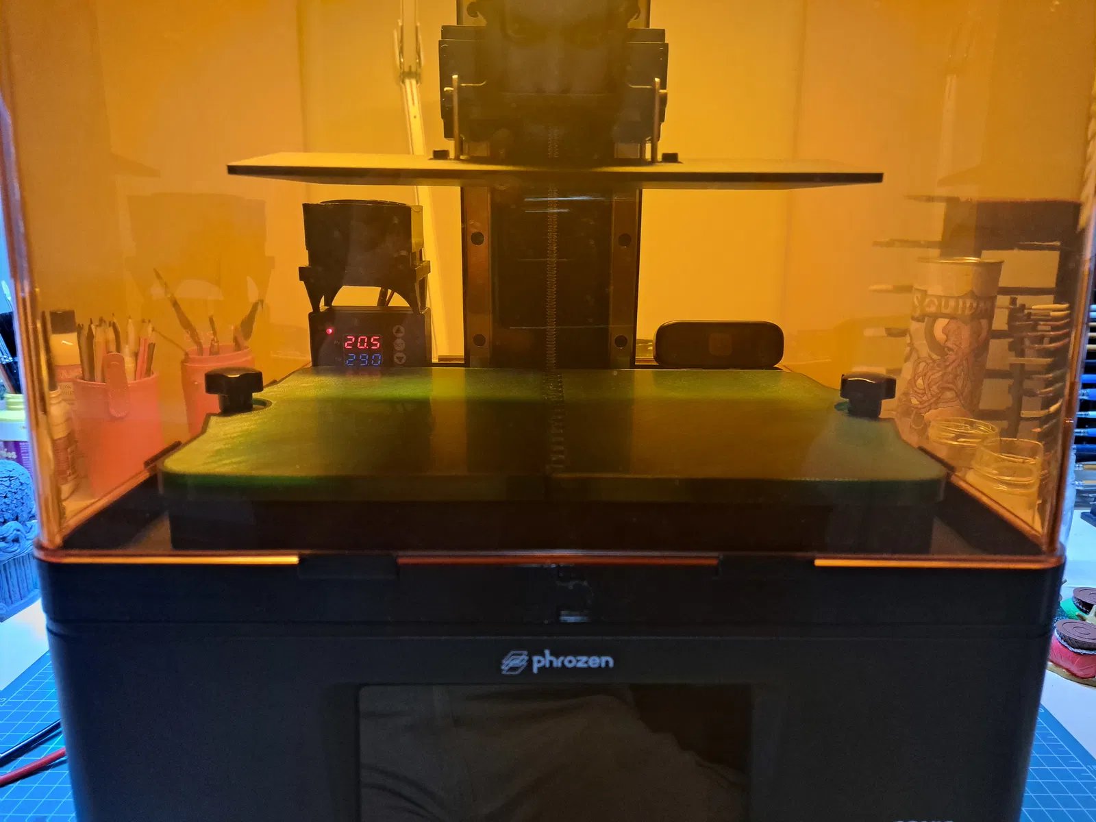 Đây là một bản mod cho Phrozen Sonic Mighty 8K/12K. Nó là một bộ đệm/nâng nắp và khung cho bộ sưởi PTC và bộ điều khiển nhiệt độ W2310. Bộ đệm được sử dụng để không cần khoan/cắt nắp và đế để đi dây và gắn bộ phận PTC. Nó có thể được in trên máy in nhỏ hơn như Ender 3.