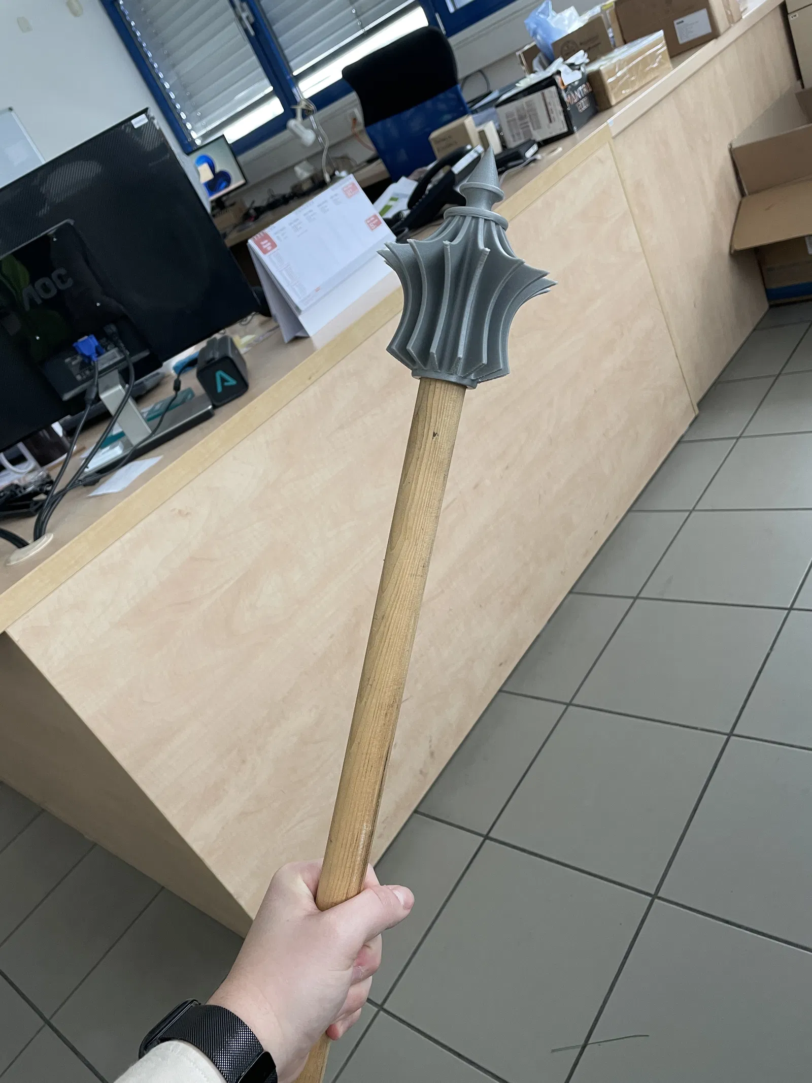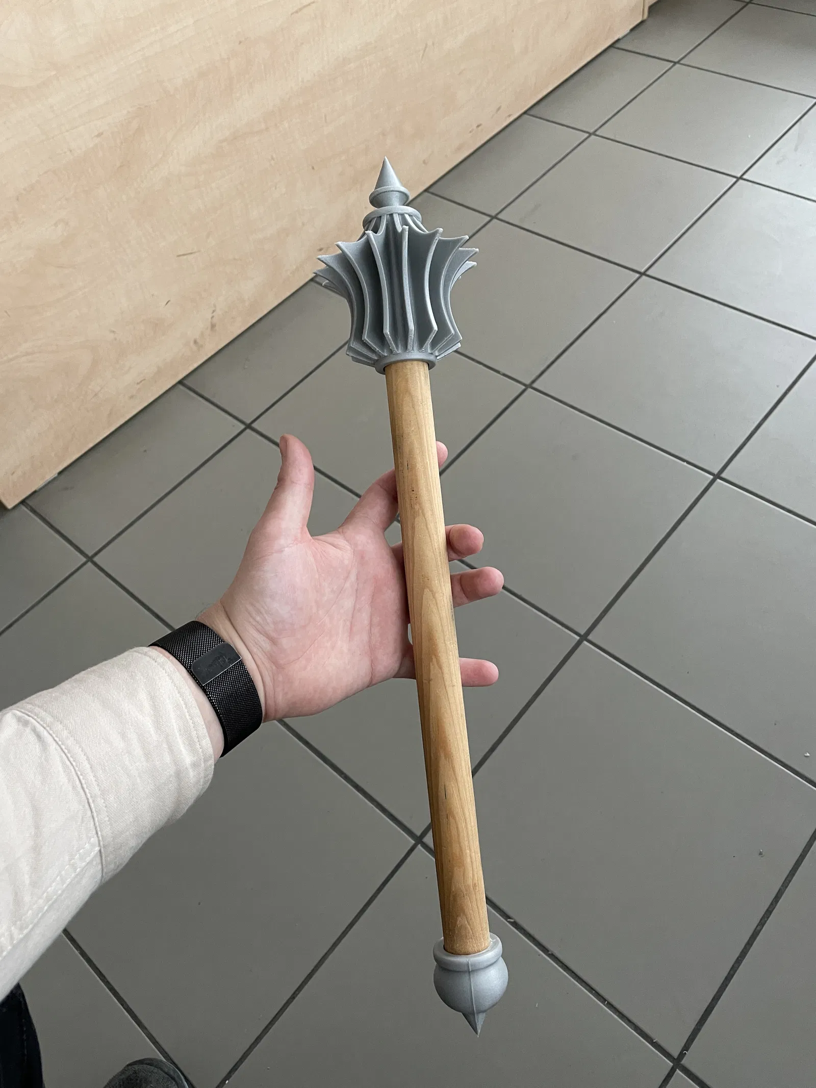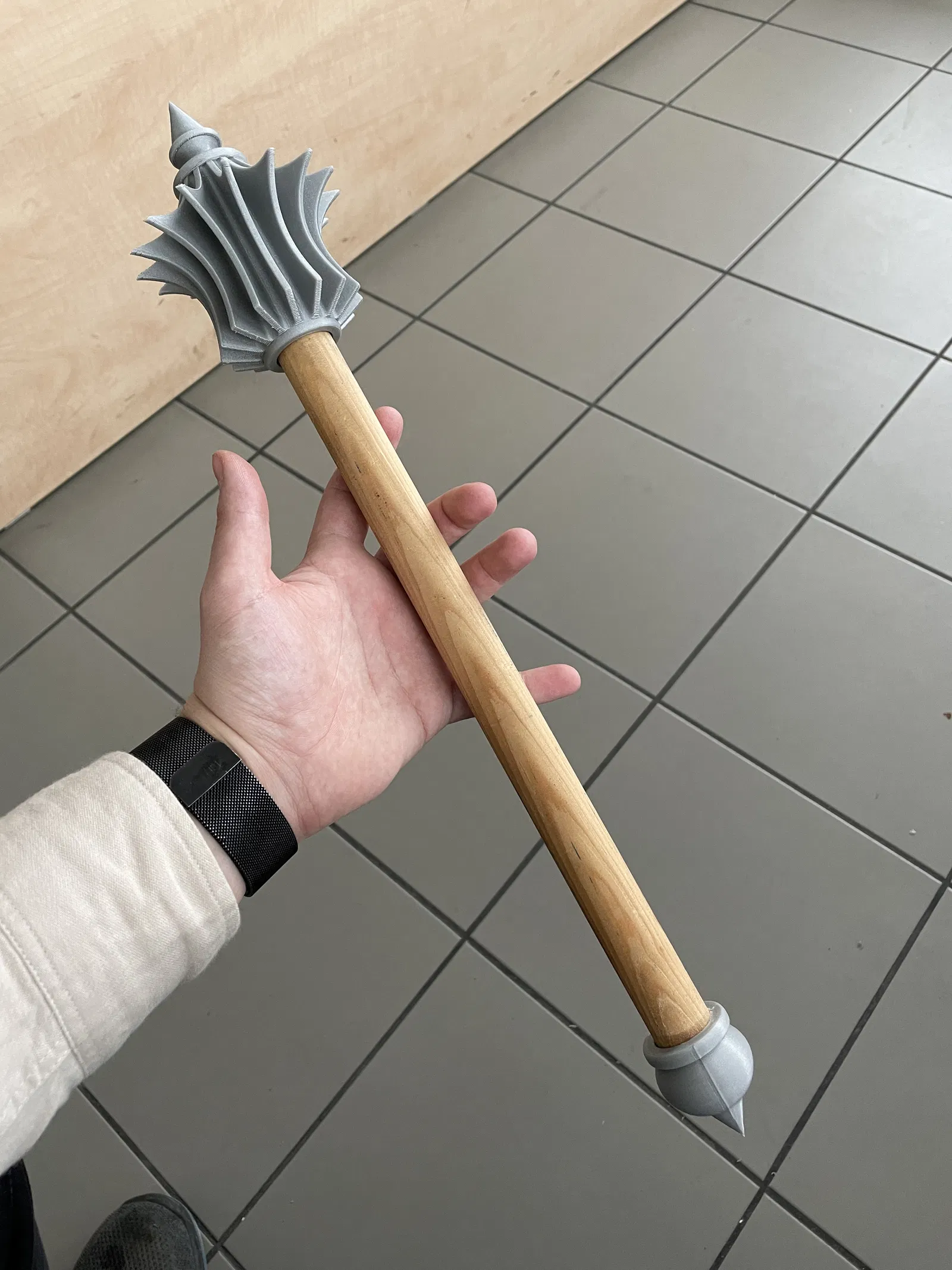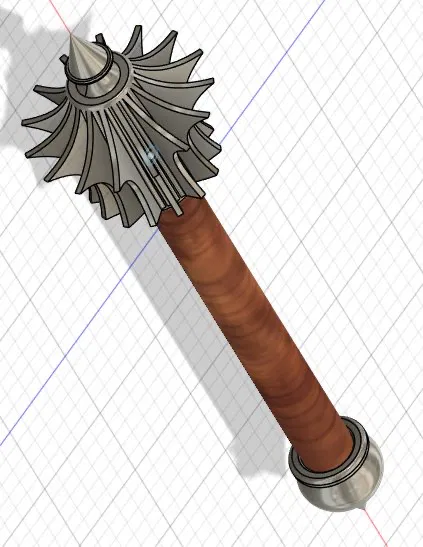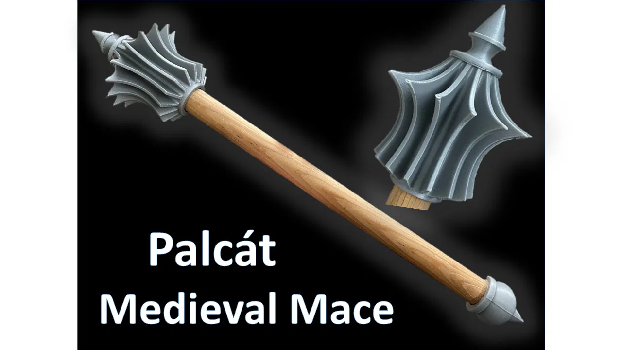 Mẫu chùy đơn giản do chủ mẫu thiết kế cho bạn đồng nghiệp hóa trang thành chiến binh Hússita. Kích thước lỗ có thể tùy chỉnh theo cán gậy. Có phiên bản kèm lỗ vít cố định hoặc không.