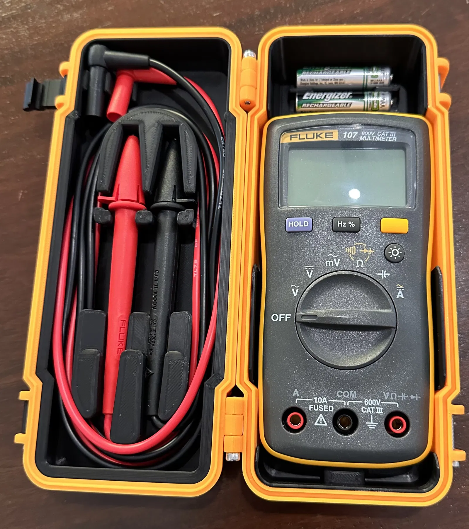 Muốn giữ cái Fluke 107 của bạn cùng dây đo và pin dự phòng một cách gọn gàng? Chiếc hộp nhỏ này là giải pháp, được tùy chỉnh từ thiết kế có sẵn để tối ưu hóa không gian và sự tiện lợi.
