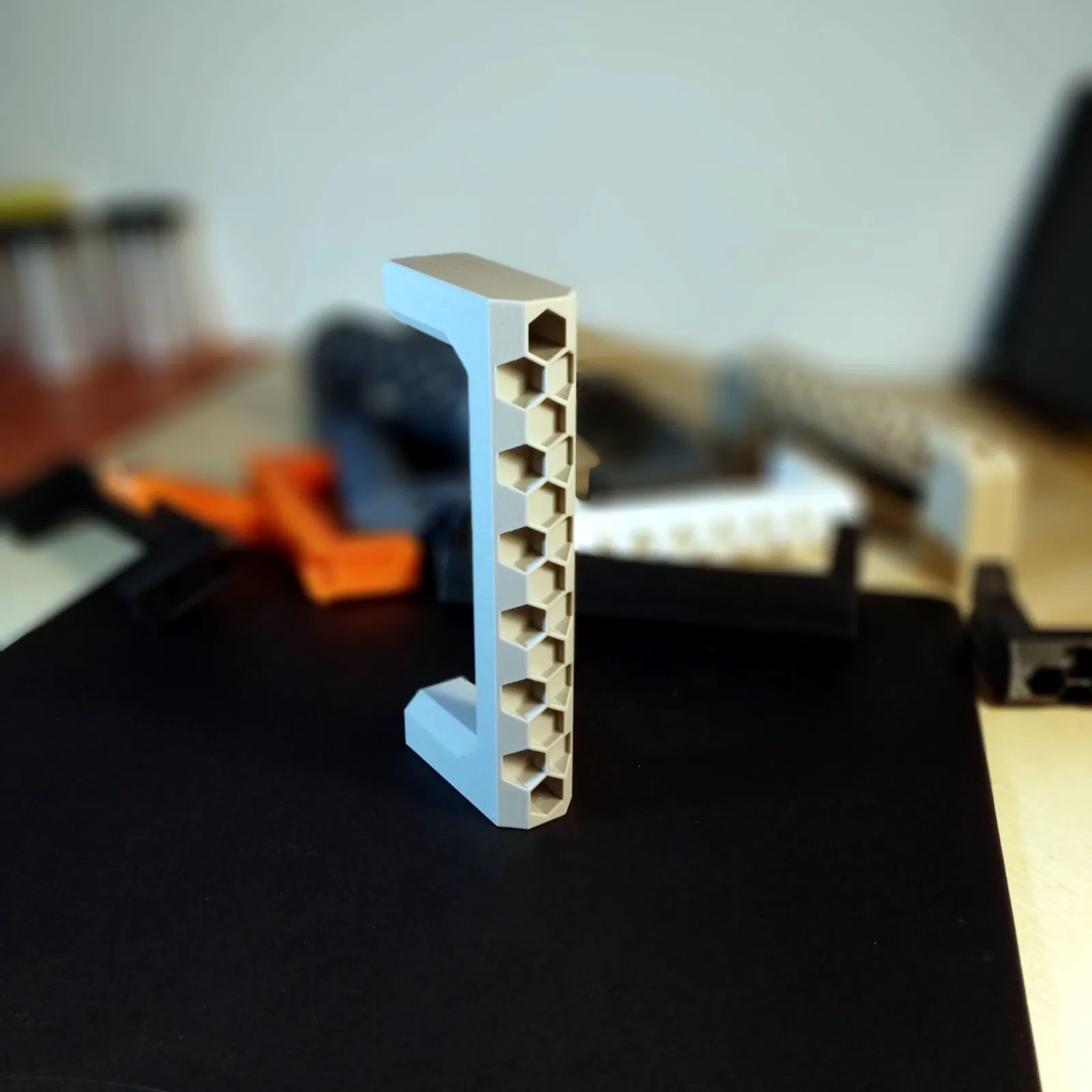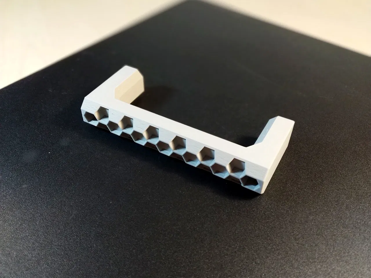 Tay nắm hộc tủ họa tiết tổ ong độc đáo, không cần supports, dễ dàng lắp đặt chỉ với hai con vít. In bằng PLA với độ cao lớp 0.20mm, viền 2 và infill 15% cho kết quả chắc chắn và đẹp mắt.