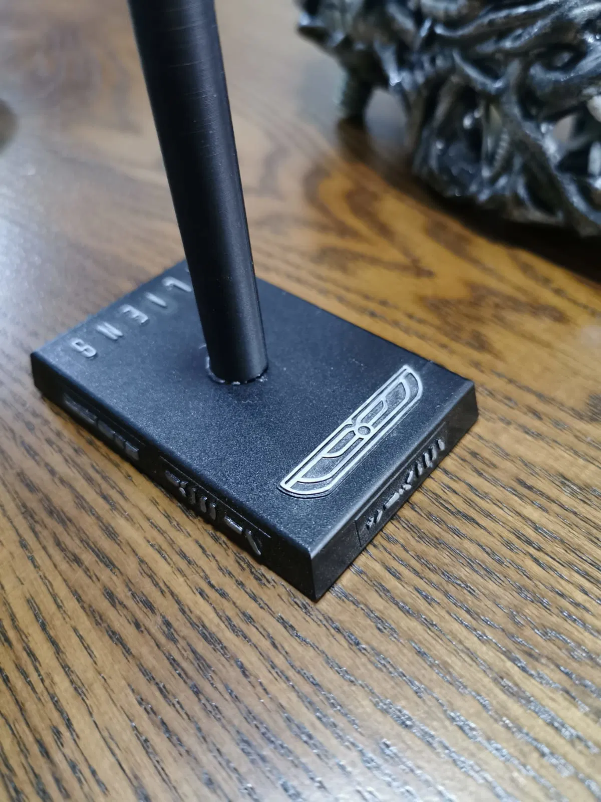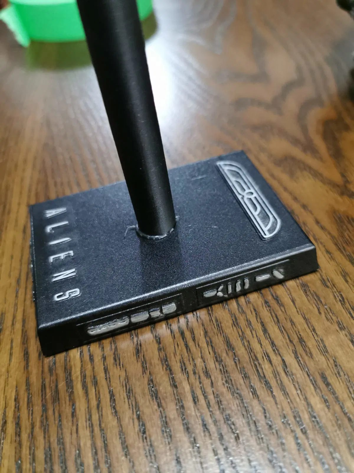 Logo phim Aliens, logo Tập đoàn Weyland-Yutani và một vài chữ tượng hình ngoài hành tinh được thêm vào. Đây là một bản chỉnh sửa của chân đế Xenomorph Tropy, tạo ra một thiết kế độc đáo cho người hâm mộ Aliens.