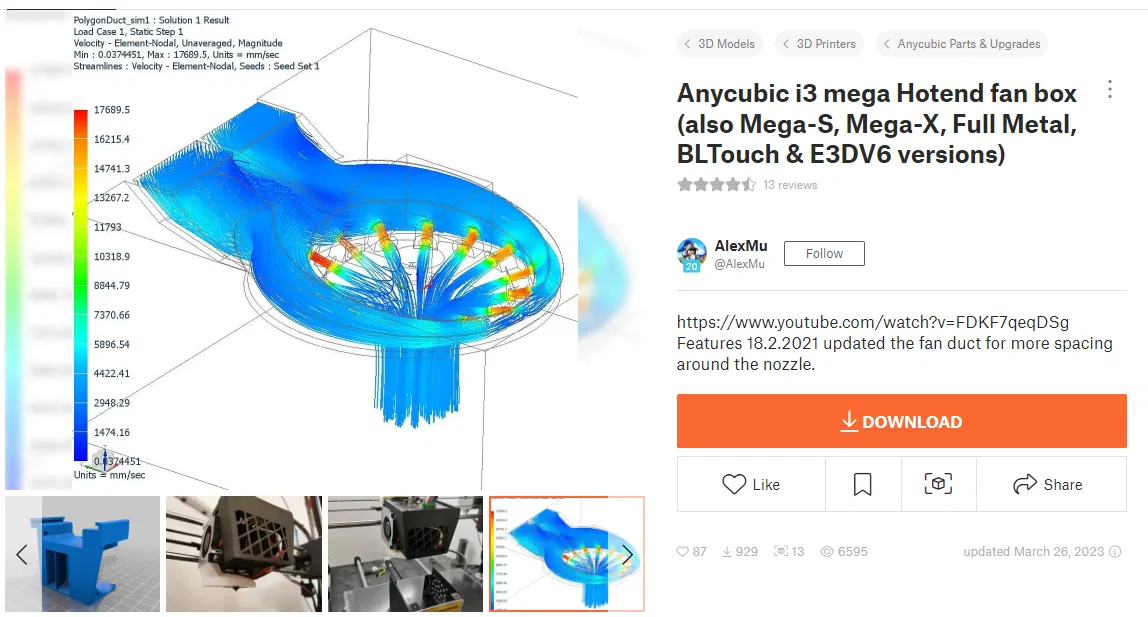 Mô hình Flsun Q5 FanDuct được chỉnh sửa, với các phiên bản A (không vách ngăn) và B (có vách ngăn). Khuyến khích in bằng ABS, PETG hoặc PLA. Bản cập nhật 02.01.2024 bổ sung các cải tiến về chiều cao, căn chỉnh tâm và thêm móc cố định, giúp việc in ấn dễ dàng hơn.