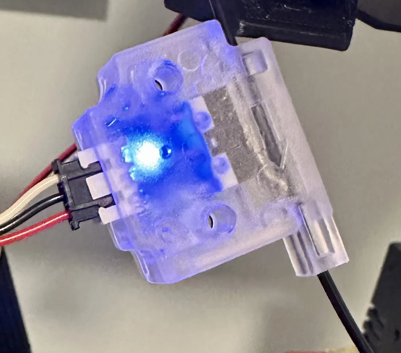 Chỉ cần một cái ngàm nhỏ gọn, dễ làm để tận dụng cổng cảm biến báo hết dây tóc (runout sensor port) có sẵn trên cạnh máy in Sovol SV06. Đèn LED sẽ sáng lên khi bạn cắm dây tóc vào.
