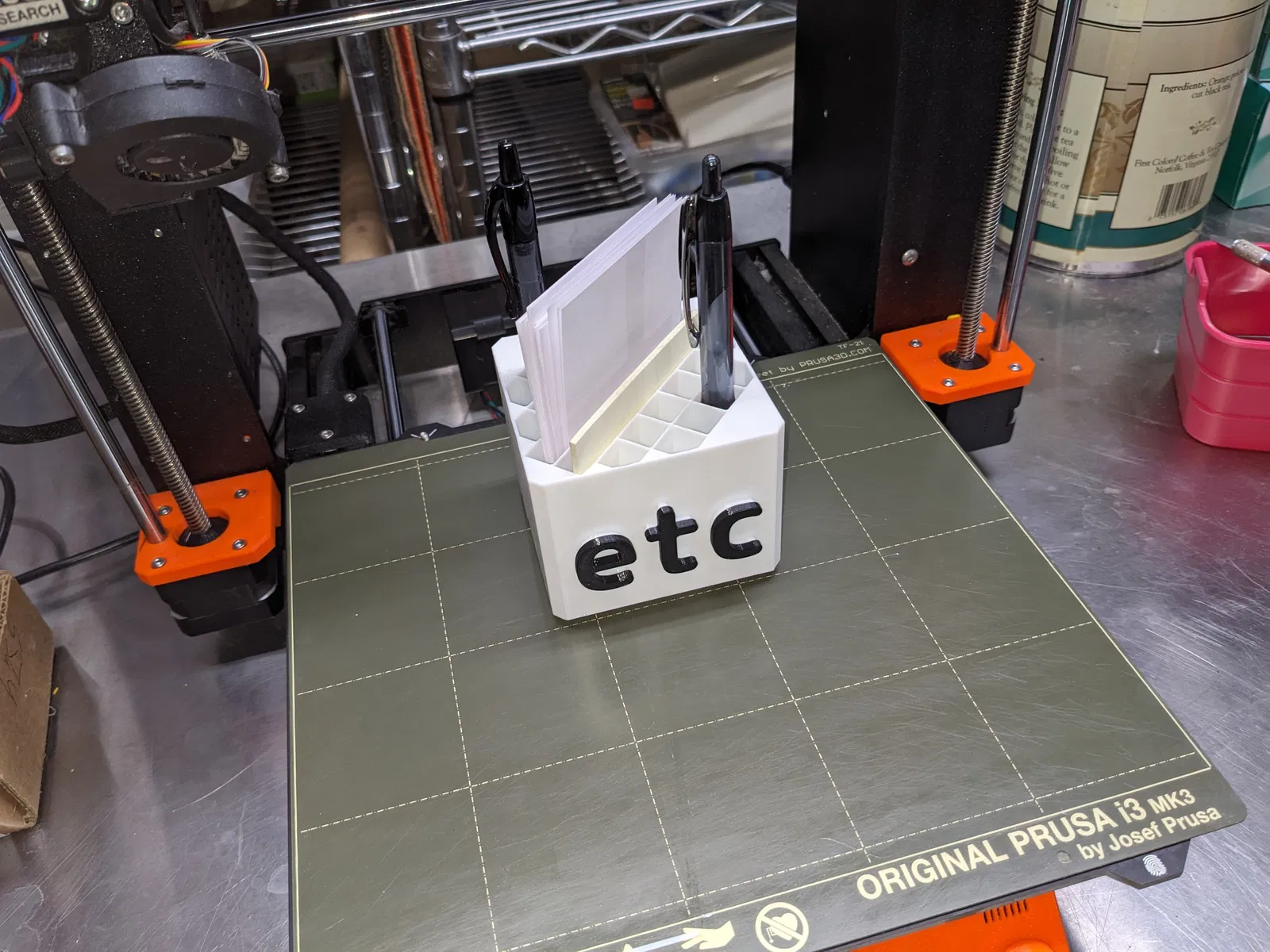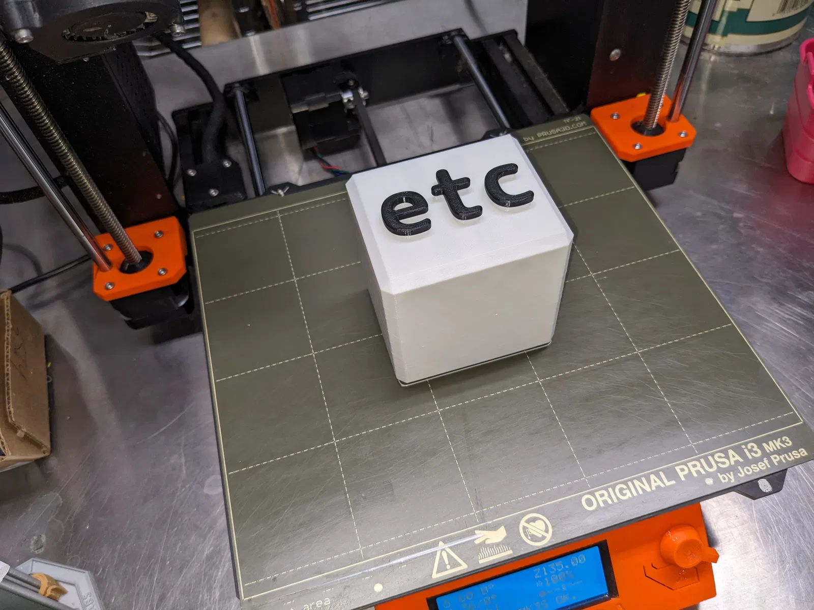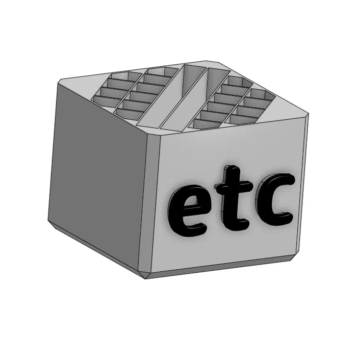 Đặt mô hình trên khay in nằm ngửa, với chữ "etc" hướng lên trên.